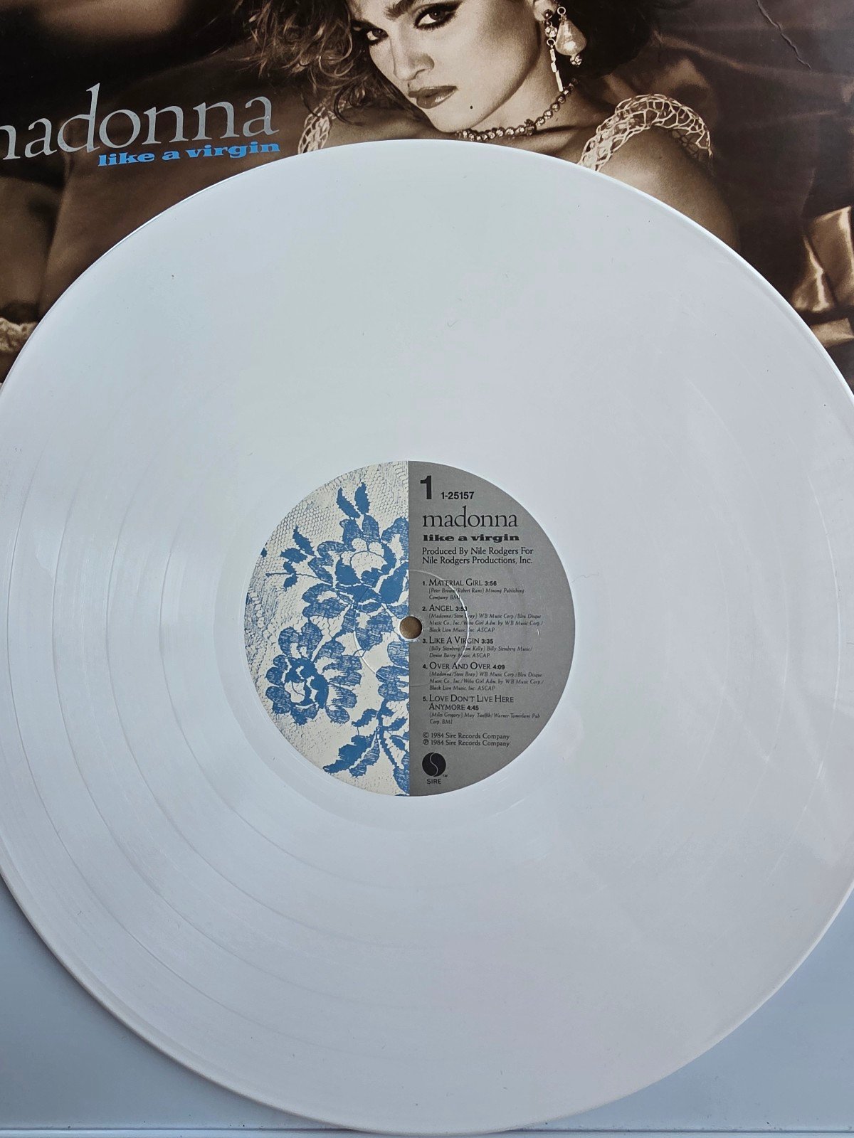 This Promo Copy (gold stamped) of Madonna's Like A Virgin LP is white vinyl and in beautiful condition!