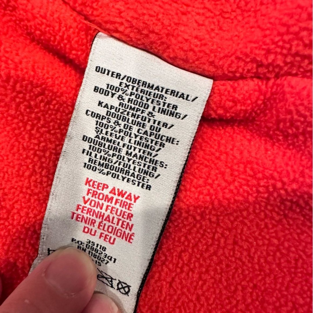 Stylish orange fleece lined jacket featuring an owl print. Perfect for a cozy and fashionable look. Warm and water resistant.