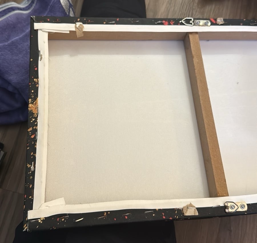 Approx measurements 12” x 30” x 1.5”. Already has hanging hardware installed, very easy to hang on wall.