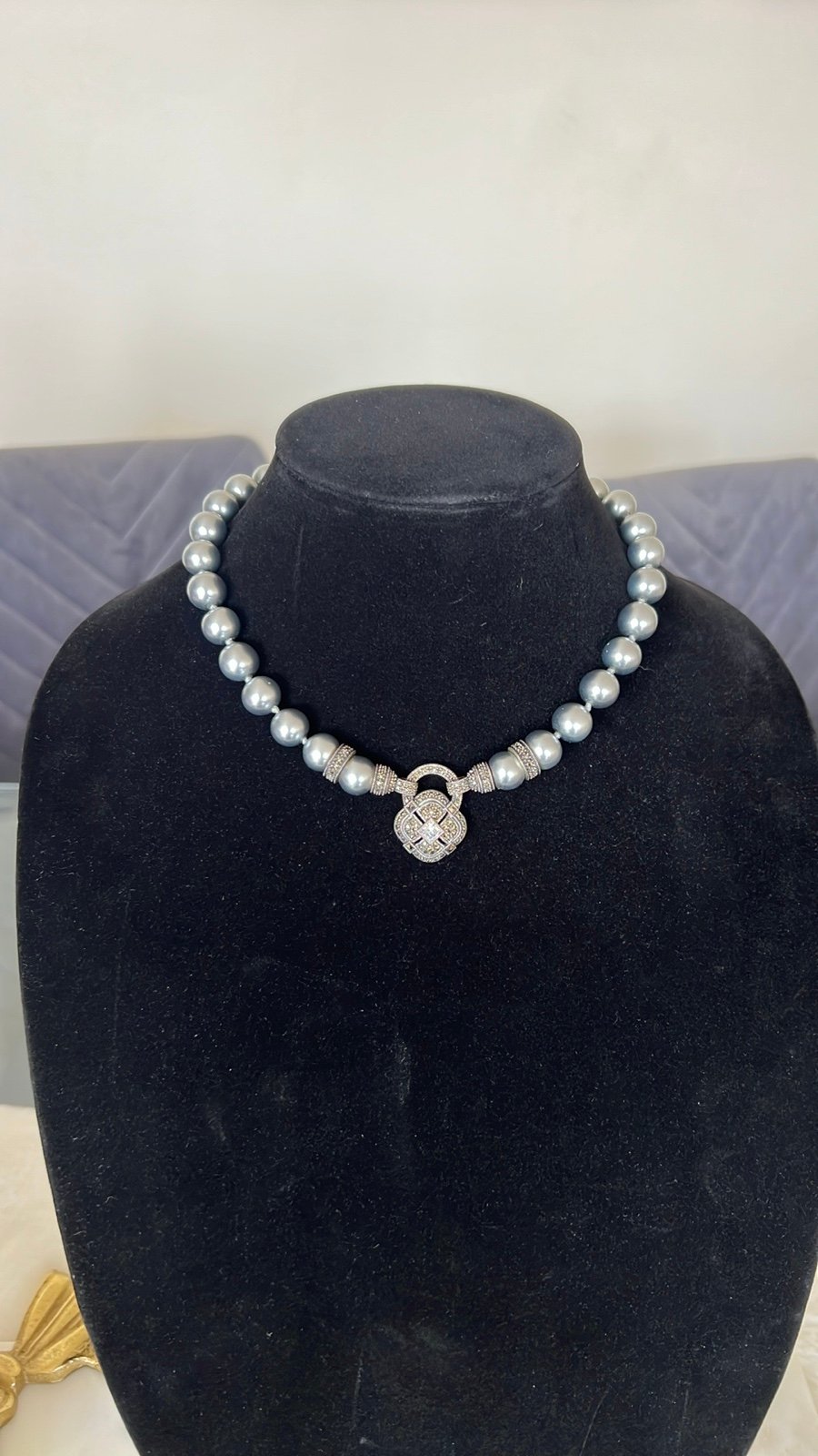 This elegant silver pearl necklace adds a touch of sophistication to any outfit. Perfect for special occasions or everyday wear.