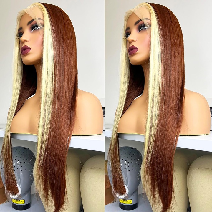 lace front wig is medium brown lace color, Average cap size (22.5inch) with 2 adjustable straps and 3 combs, You can adjust the wig cap size according to your head circumference