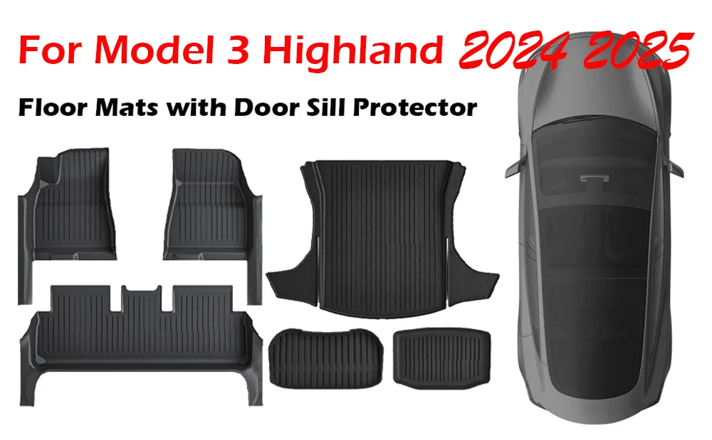 TPE Floor Mat with Door Sill Protector for Tesla Model 3 Highland Floor Trunk Mats Cargo Liner for Model 3 2025 2024 Accessories