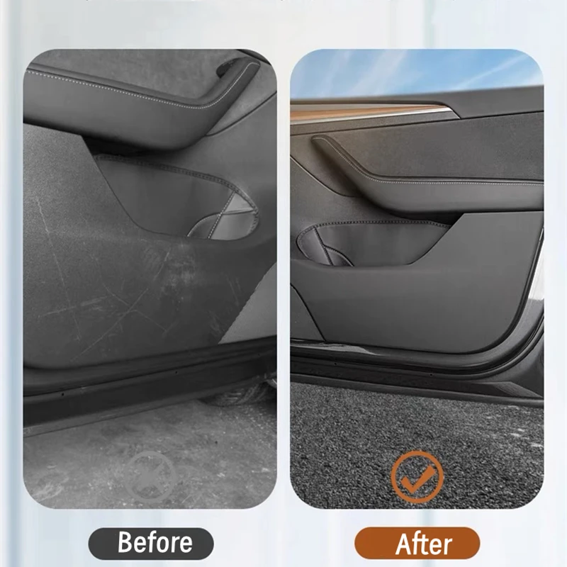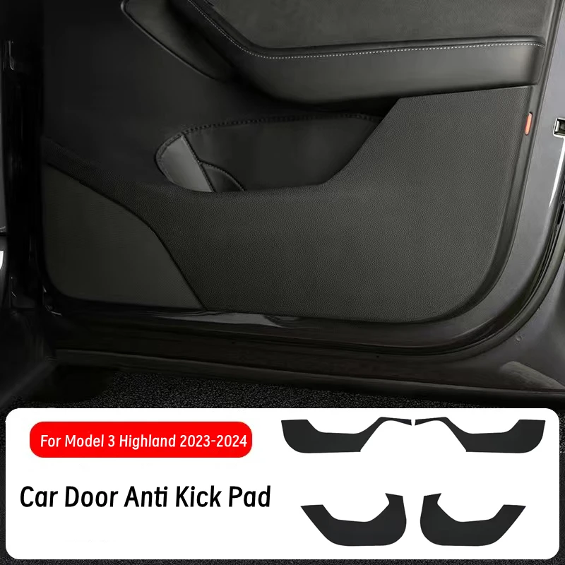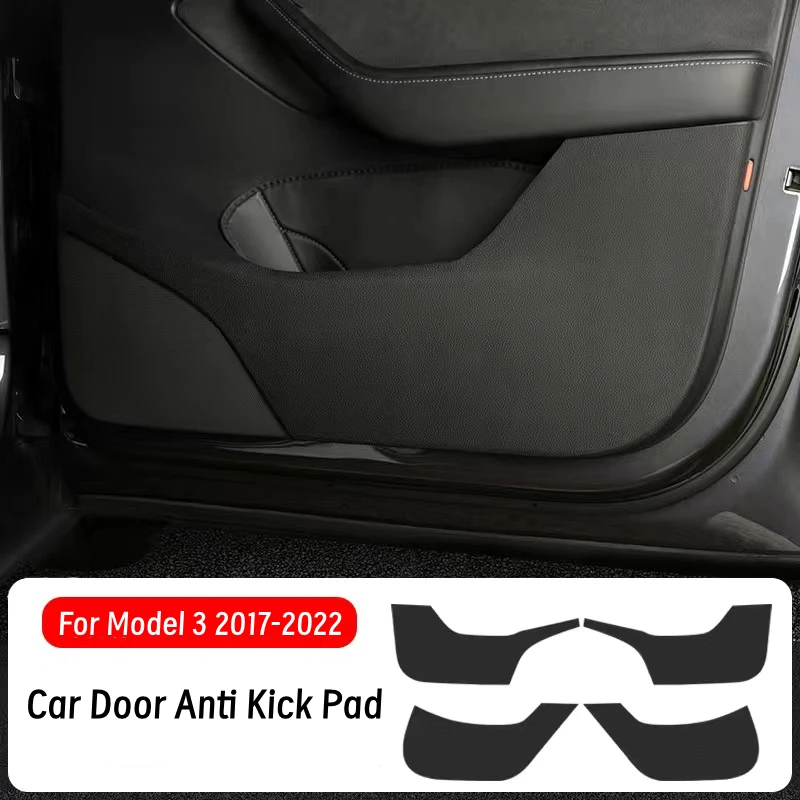 Car Door Anti-Kick Pad For Tesla 2017-2024 Model 3/Y Leather Sticker Trim Side Door Sill Protector Cover Car Interior Decoration