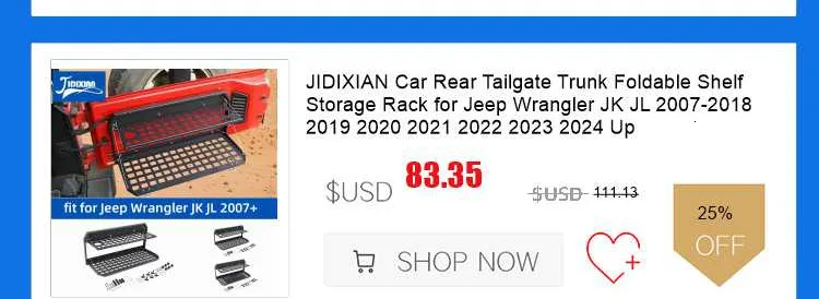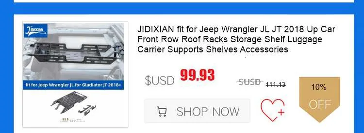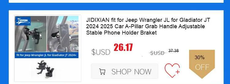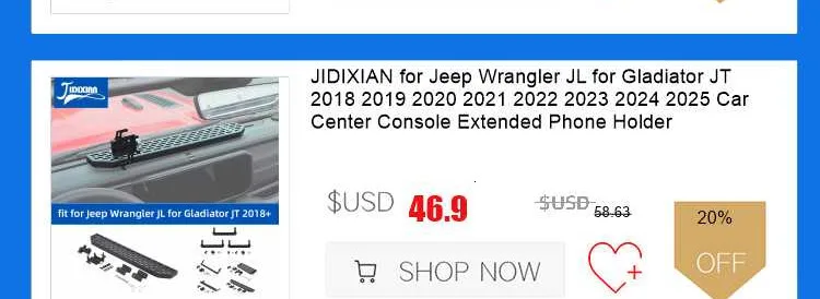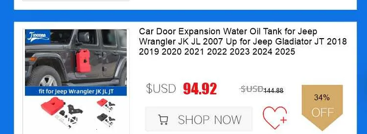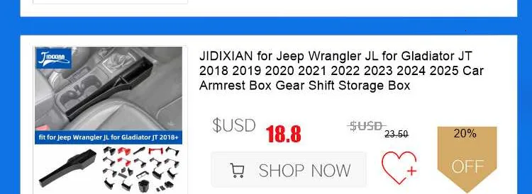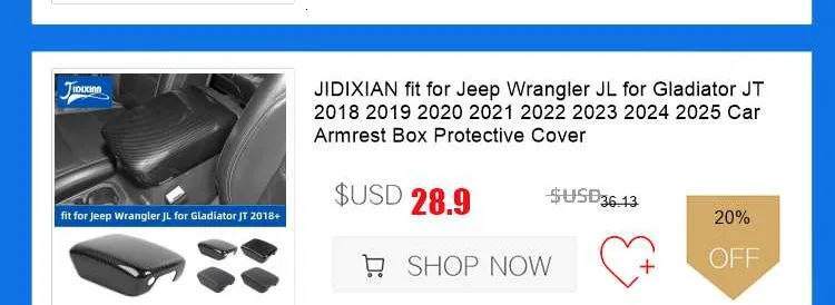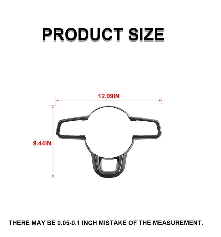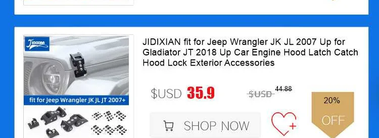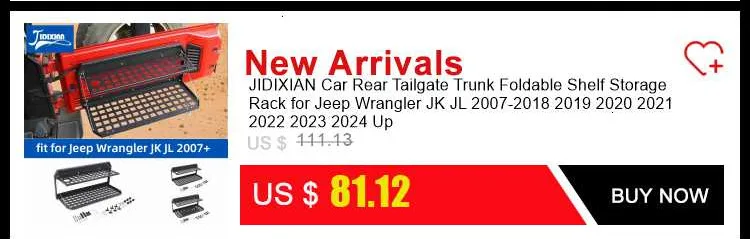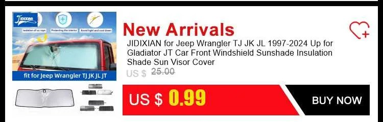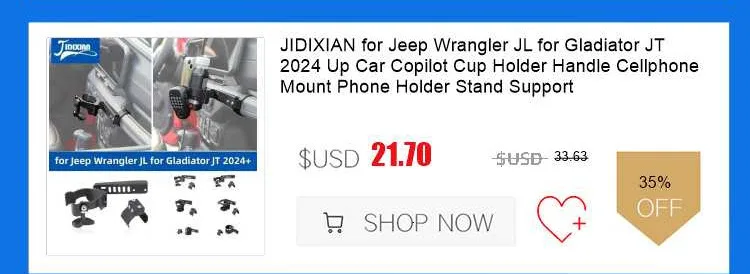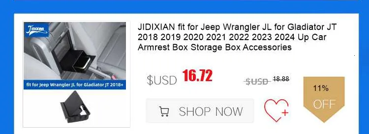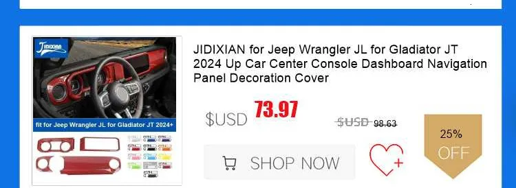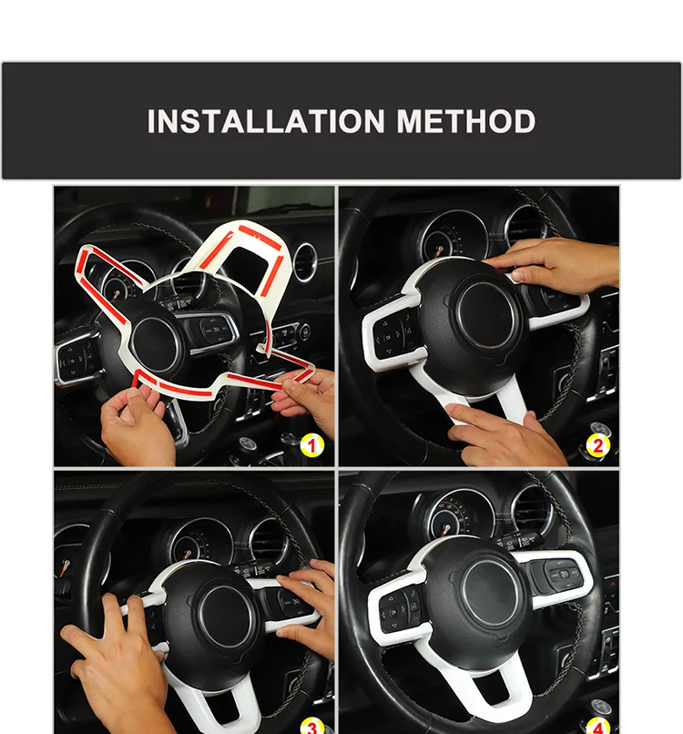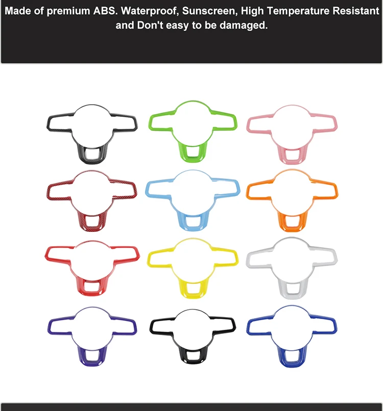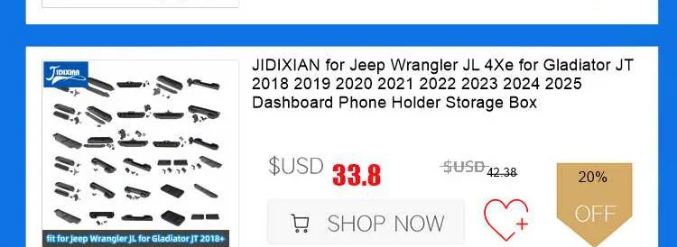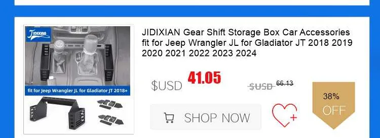 Specification 1. Car Model: fit For Jeep Gladiator JT 2018 2019 2020 2021 2022 2023 224 Up / For Jeep Wrangler JL 2018 2019 2020 2021 2022 2023 2024 Up 2. Color: Black,Red,Silver,Carbon fiber grain,orange,blue,light green,pink,yellow,white 3. Material: ABS plastic 4. Net Weight: 40 g 5. Package Include: 1 pcs 6. 100% Brand New with High Quality. 7. Decorate your car charming luxury vivid. Instructions:(with double-sided tape on the back of item) Step 1: Please clean the place and make sure no dust. Step 2: Remove the double-sided tape in back. Step 3: Heat the double-sided tape by hot air gun or hair dryer; (A tip for putting on with supplied double-sided tape is to warm the product this makes the glue on the tape more sticky.) Step 4: Install the products in the right place,After installation, wait for about 1 minute, let the product paste thoroughly and then release the hand.Don't wash your car within 48 hours. Note: 1. Please check whether this item can fit on your car before purchasing. 2. If you have any questions, please feel free to contact us.