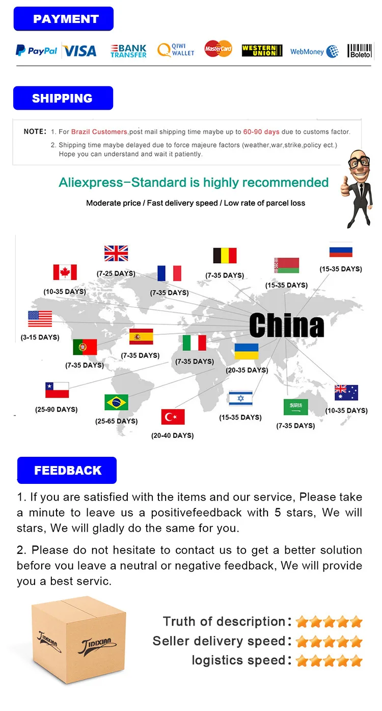 FAQ 1. How do I track my parcel? You can check the shipping information in the following link with your tracking number : (1). www.17track.net/en (2). //global.cainiao.com/ (copy it to browser). 2. Is this product compatible with my car? We will specify in the item descrption if this product is special for certain models. Please feel free to contact us if you are not sure. 3. Problems about logistics. Basically, extreme weather condition and post office strike are the 2 main reasons for unusually slow delivery. 4. Problems about products. If you received a broken/inapplicable product,please contact us and let us solve this problem the first time. If you give us a bad evaluation directly, this will not help you to deal with the problem. I hope that you can contact us first and then decide your evaluation of us. Thank you very much. 5. Follow us to get "Exclusive Fans Discount" and fan coupons to save more and be the first to know when we have something new. 6. We are a manufacturer, support customized products、 dropshipping、and wholesale.