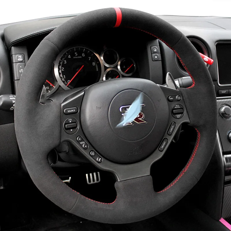 Hand-stitched Suede Car Steering Wheel Cover for Nissan GTR GT-R R35 Nismo 2008-2016 Full Coverage Steering Wheel Accessory