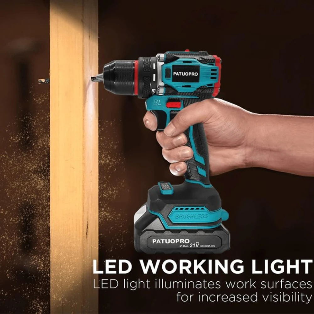 PATUOPRO 10mm Cordless Brushless Electric Drill 2-Speed Metal Chuck Drill Screwdriver Home DIY Power Tool For Makita 18V Battery