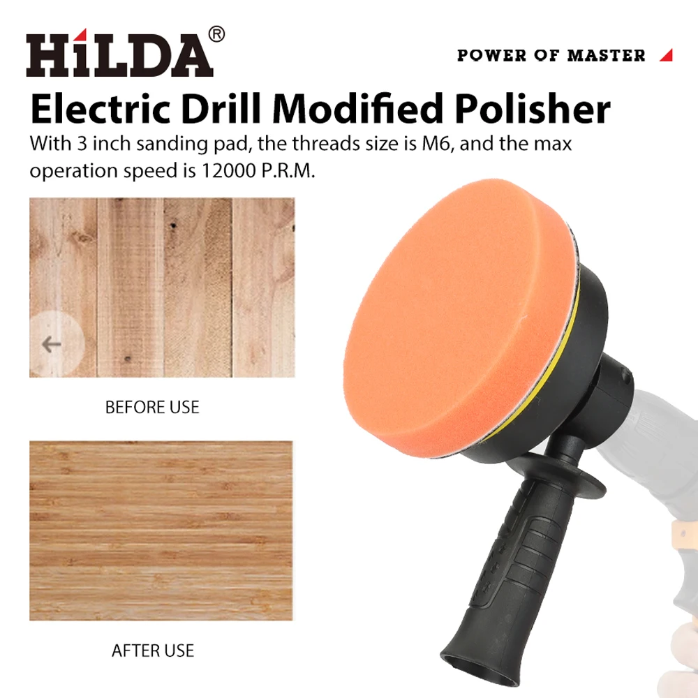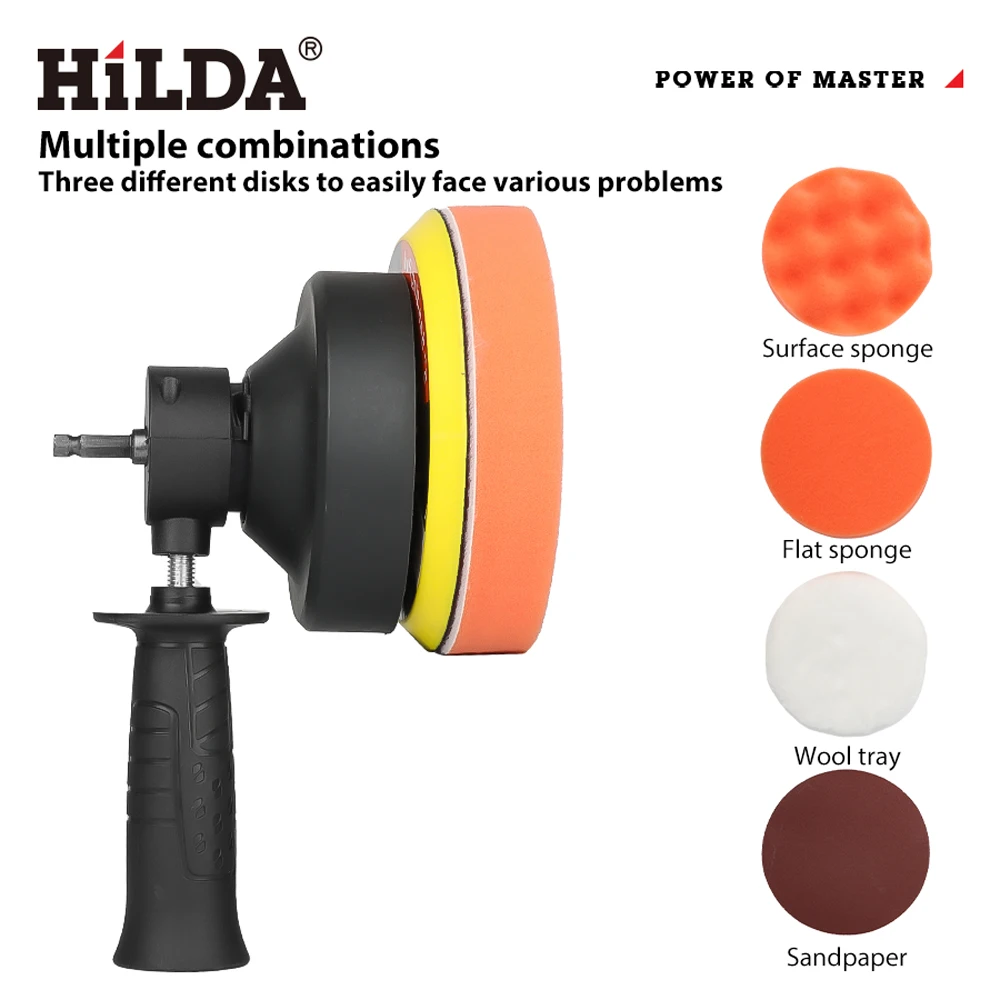 HILDA Electric Polishing Machine Set 7 Pcs Car Polisher for Car Maintenance Furniture Cleaning Detail Polishing and Waxing