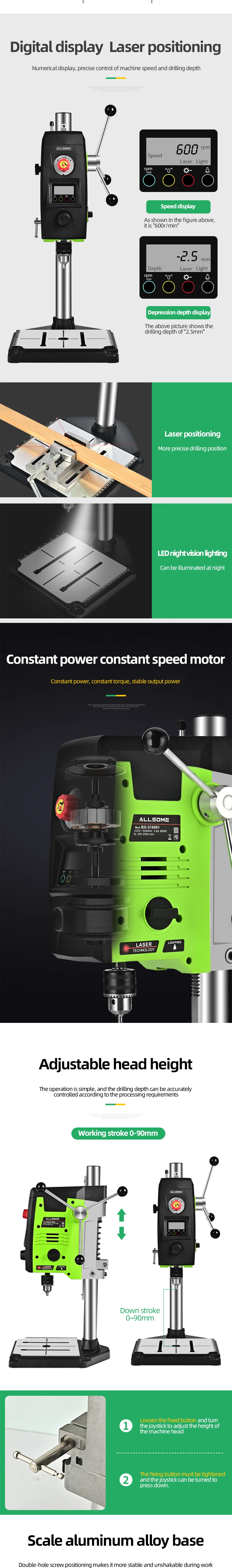 ALLSOME 6-Speed 800W Benchtop Drill Press Drilling Machine BG-518801