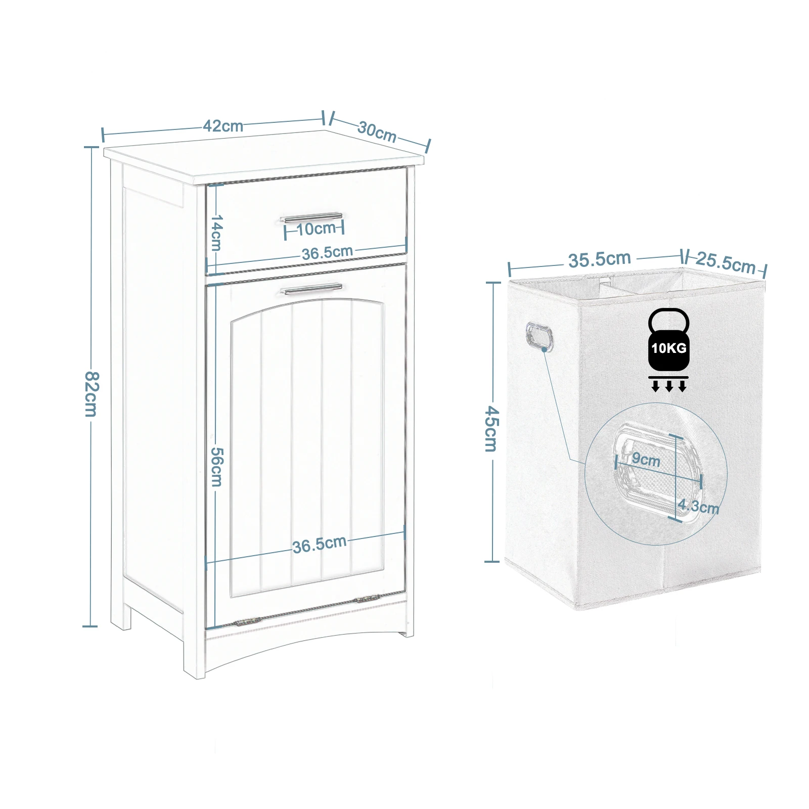 White Bathroom Cabinet with Fold-out Laundry Basket 42x82x30cm Slim Clothes Cupboard Sundries Toilet Storage Racks