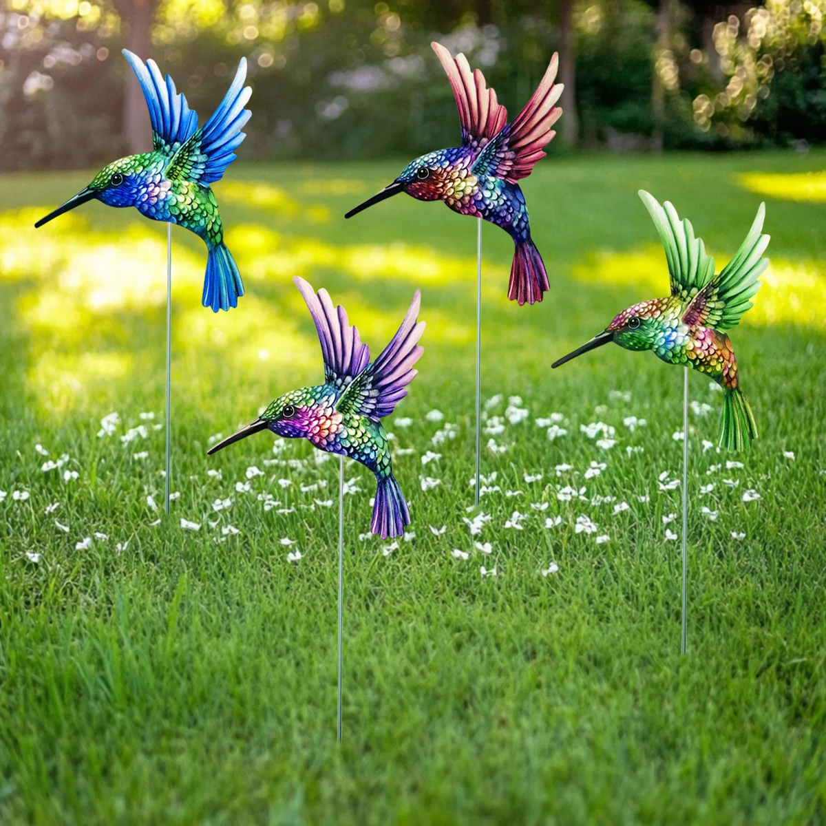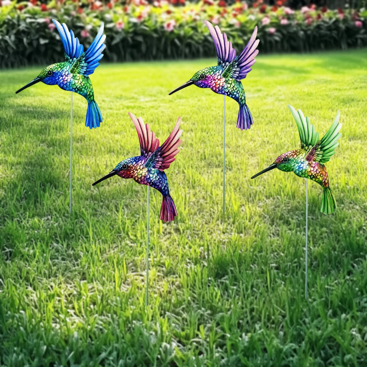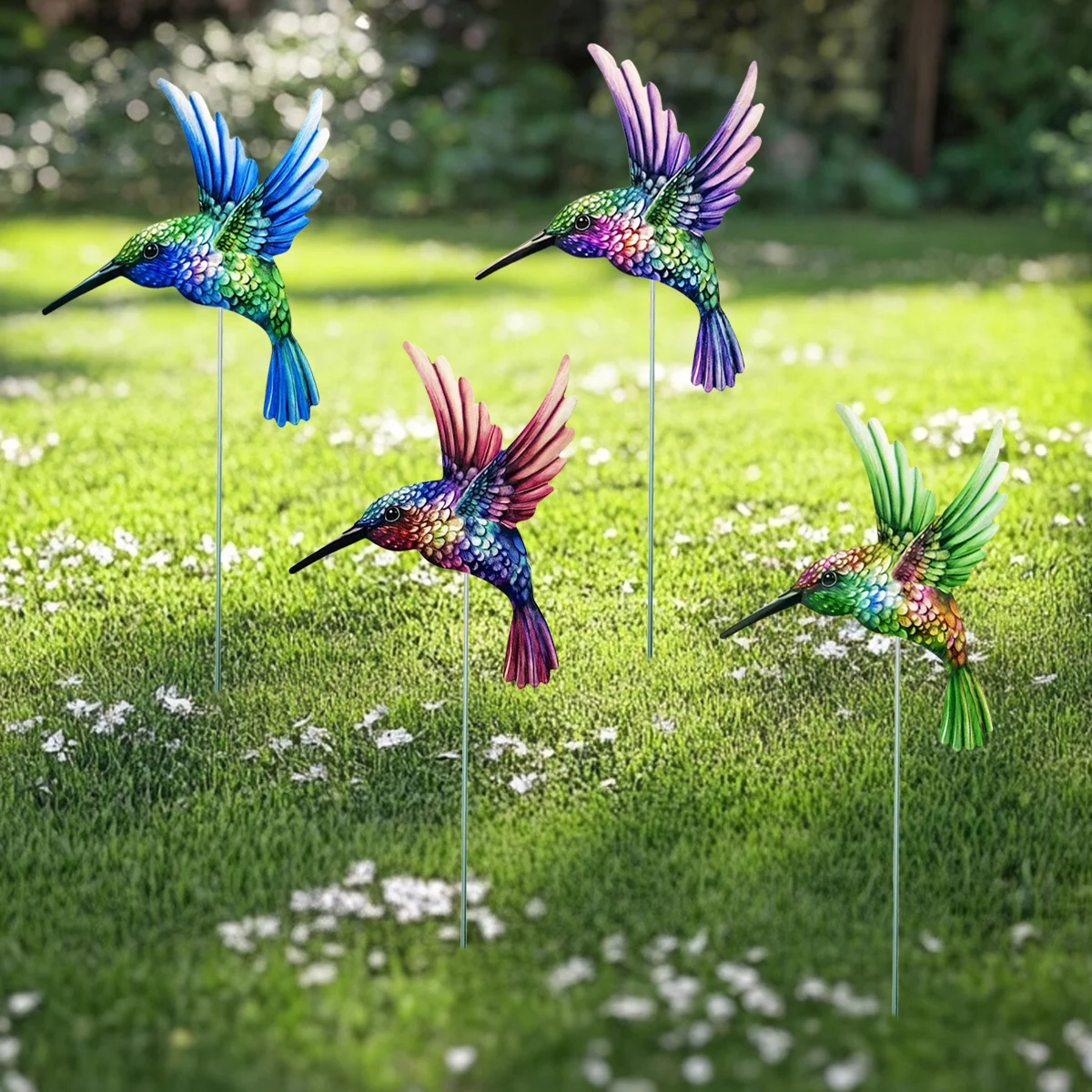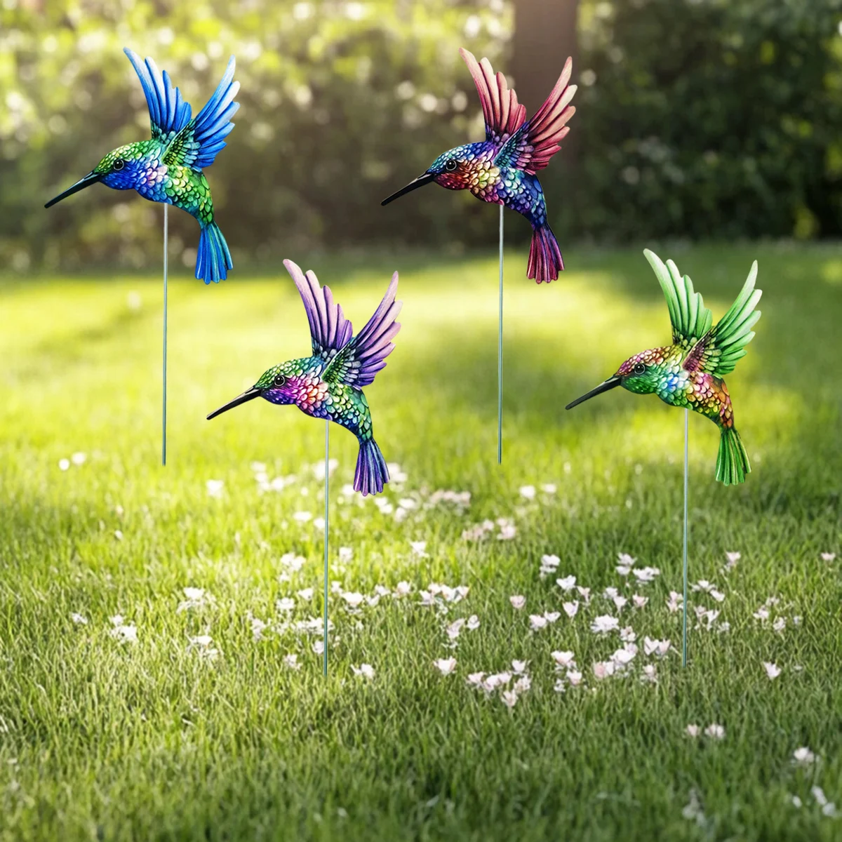 *The hummingbird stakes art is made of high-quality metal, sturdy and holding up well in the outdoor