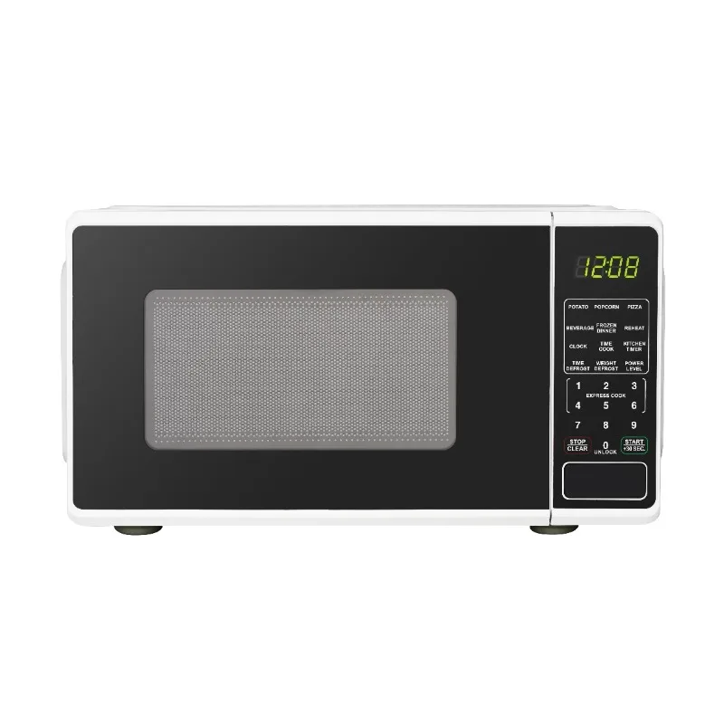 Mainstays 0.7 Cu ft 700-Watt Compact Countertop Microwave Oven is available in 3 colors including Black, Red or White. Each color is designed to complement your kitchen, dorm room, office or rec room. Features include LED display, kitchen timer & clock, 10 different power levels for cooking a variety of foods, weight & time defrost, 6 convenient quick-set menu buttons, 30 second one-touch option, child safety lockout and a push-button door. The Mainstays 0.7 Cu ft 700-Watt Compact Countertop Microwave Oven is the perfect addition to any home. Condition: New, Stock Number: MS8436127995-01