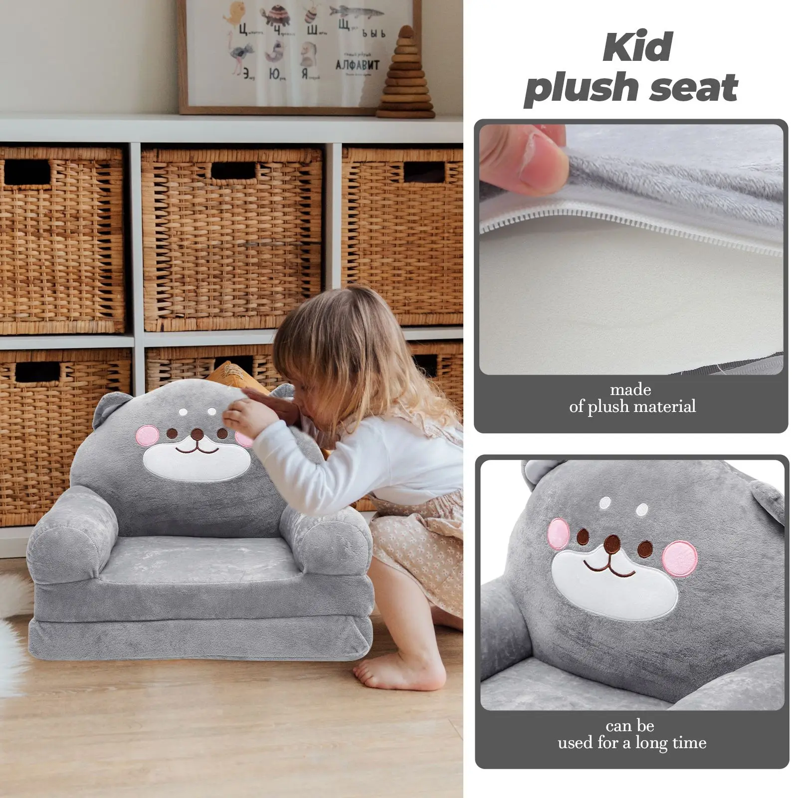 Folding Children's Children'S Sofa Elephant Shape Baby Seat Kid Plush Toddler Stool Kids Room Nursery Bedroom Living