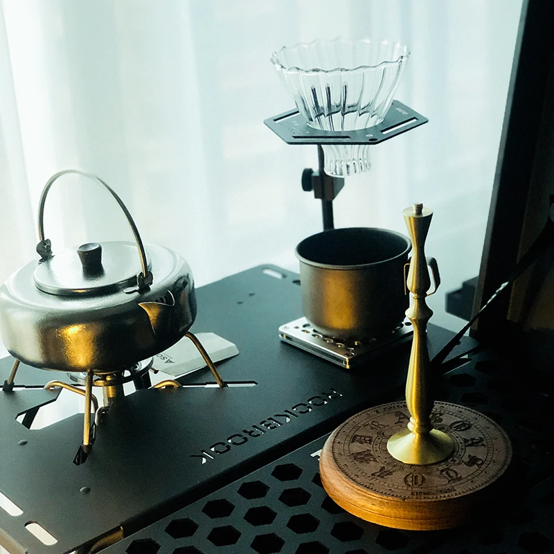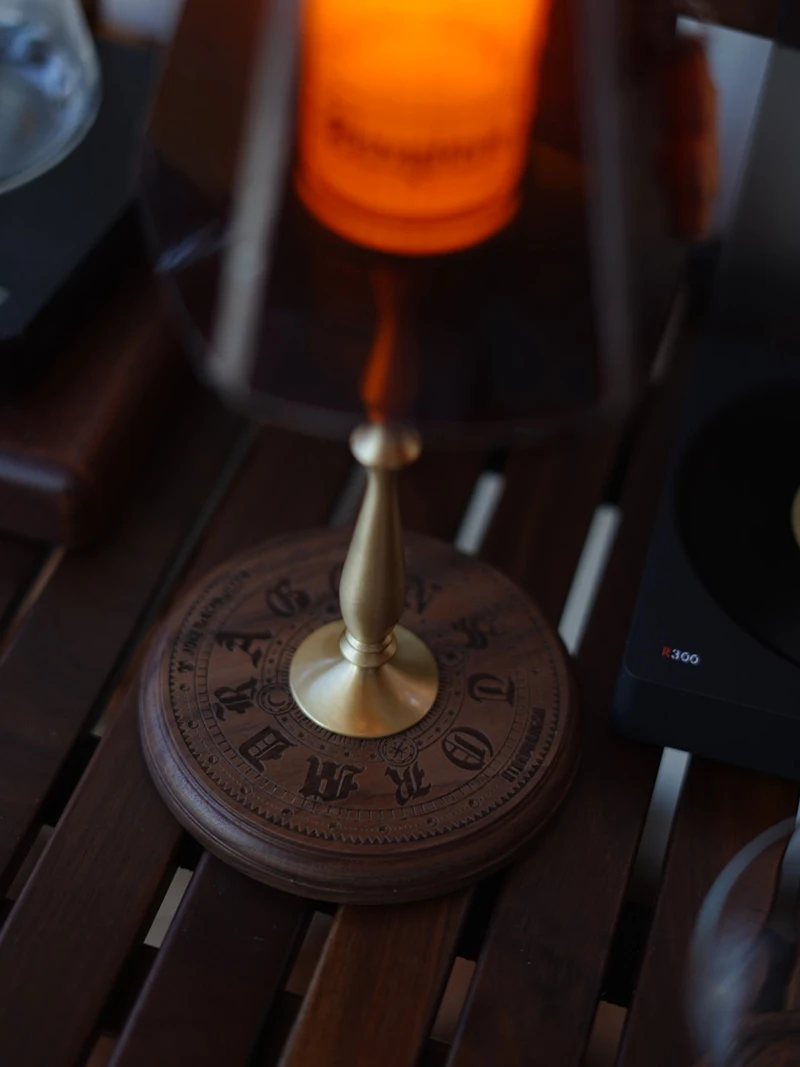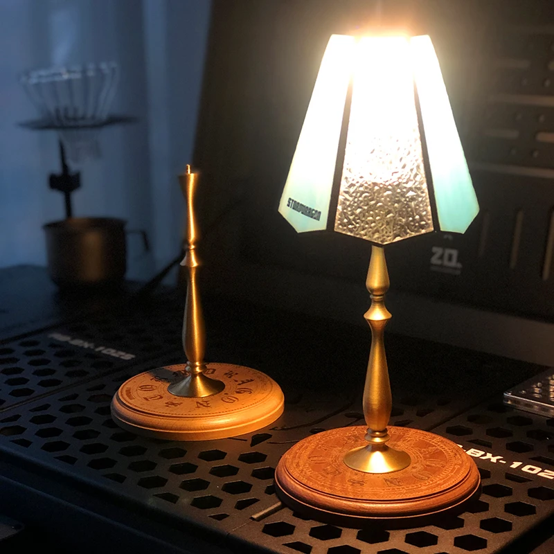Outdoor Camping Desktop Lamp Holder, Pure Copper, Solid Wood Combination Lamp Holder, Equipped with 1/4 Connecting Screw