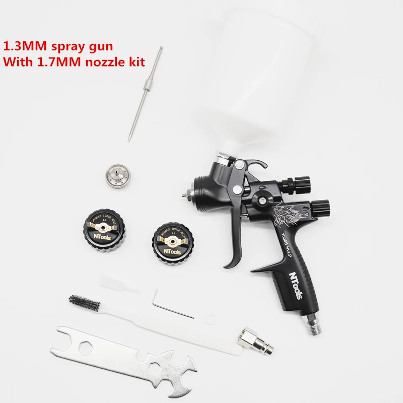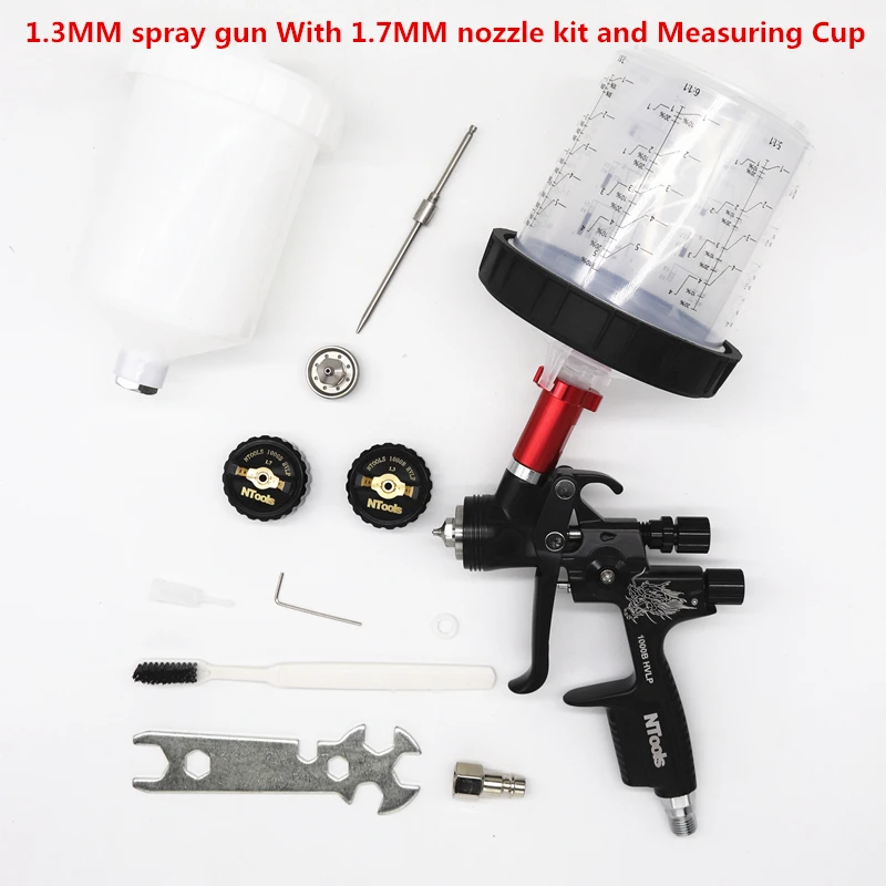Hvlp Spray Gun with Adapter and Mix Tank Car Repair Paint Spray Guns 1.3 And 1.7mm Nozzle for Painting Water Based Air Spray Gun