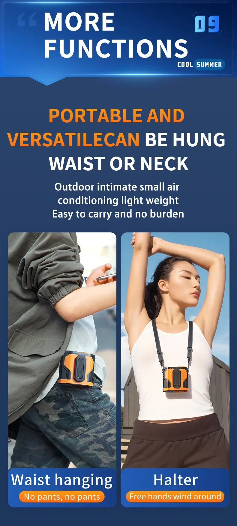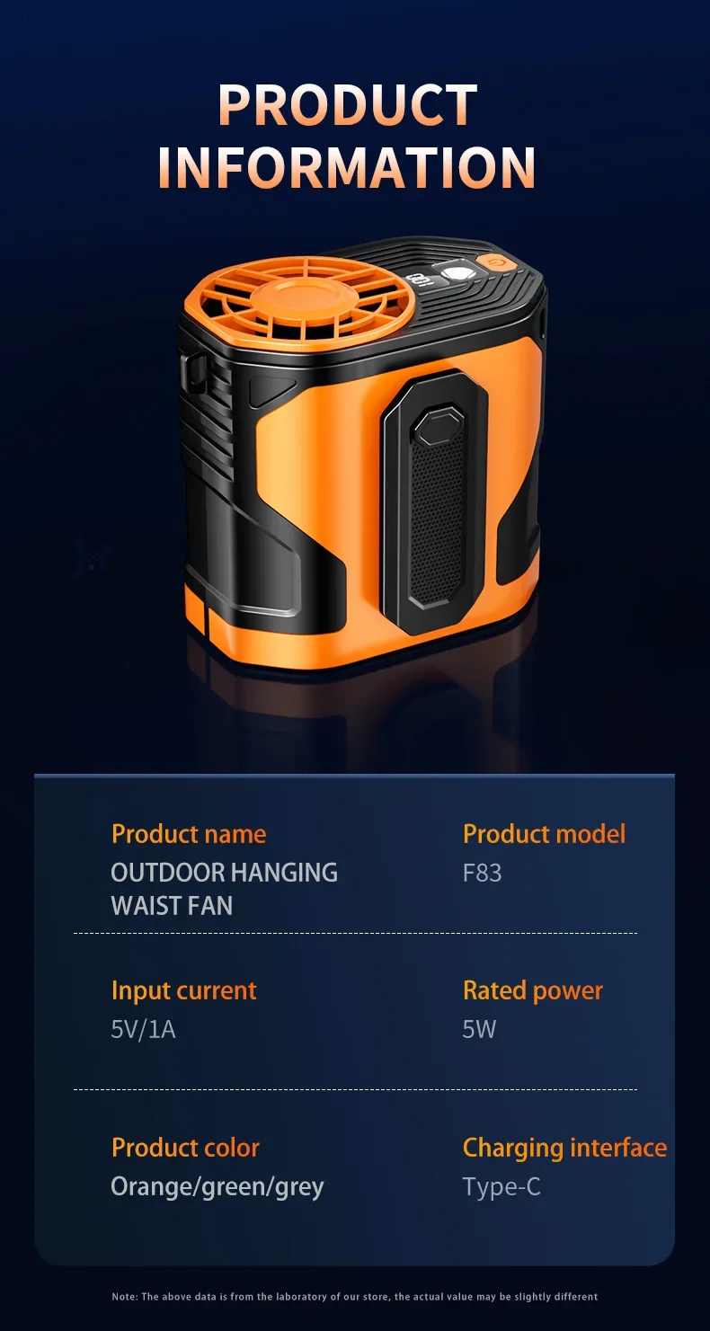 F83 Portable neck clamp fan, high-speed waist fan, 100 speed, USB ultra quiet, outdoor construction site sports cooling artifact