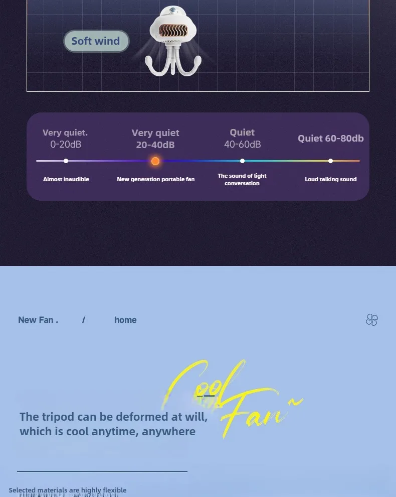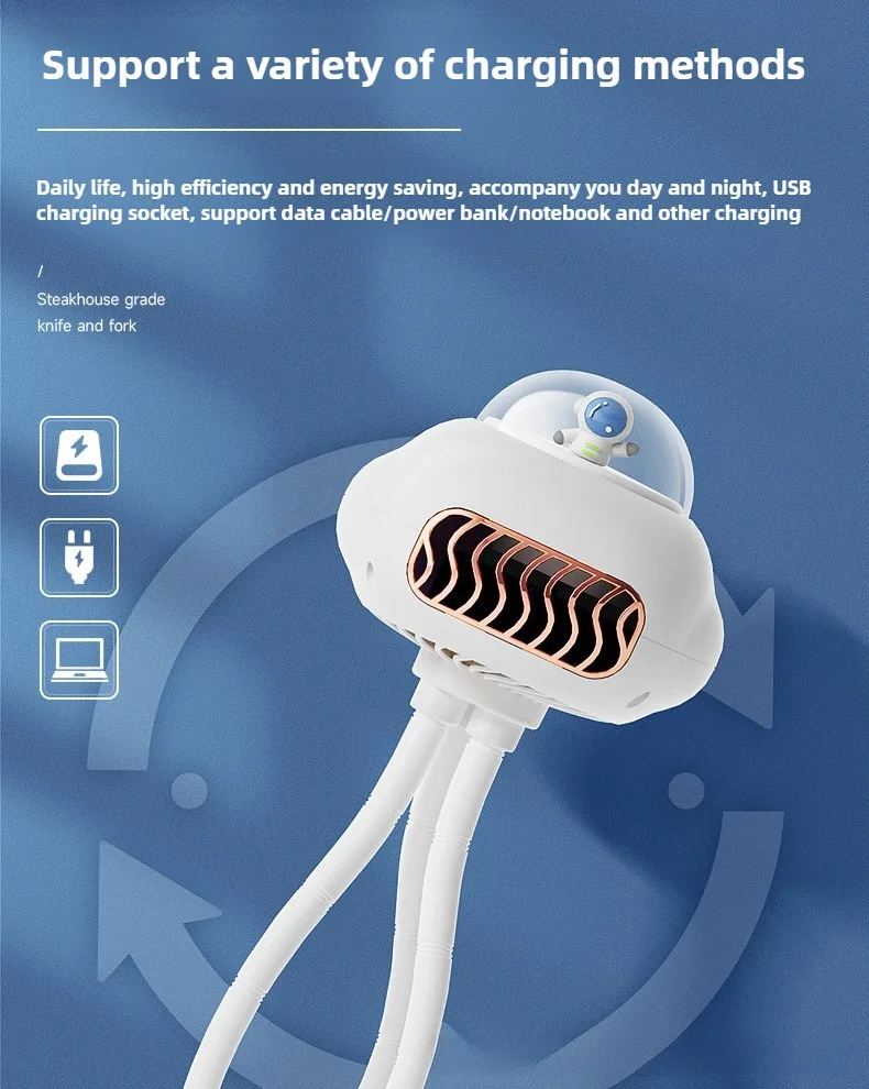 Portable Leafless Fan Octopus Design USB Charging Small Table Fan for
