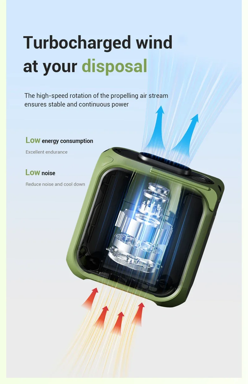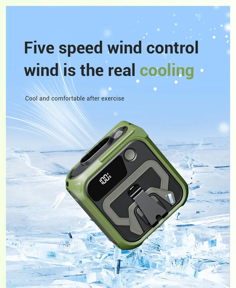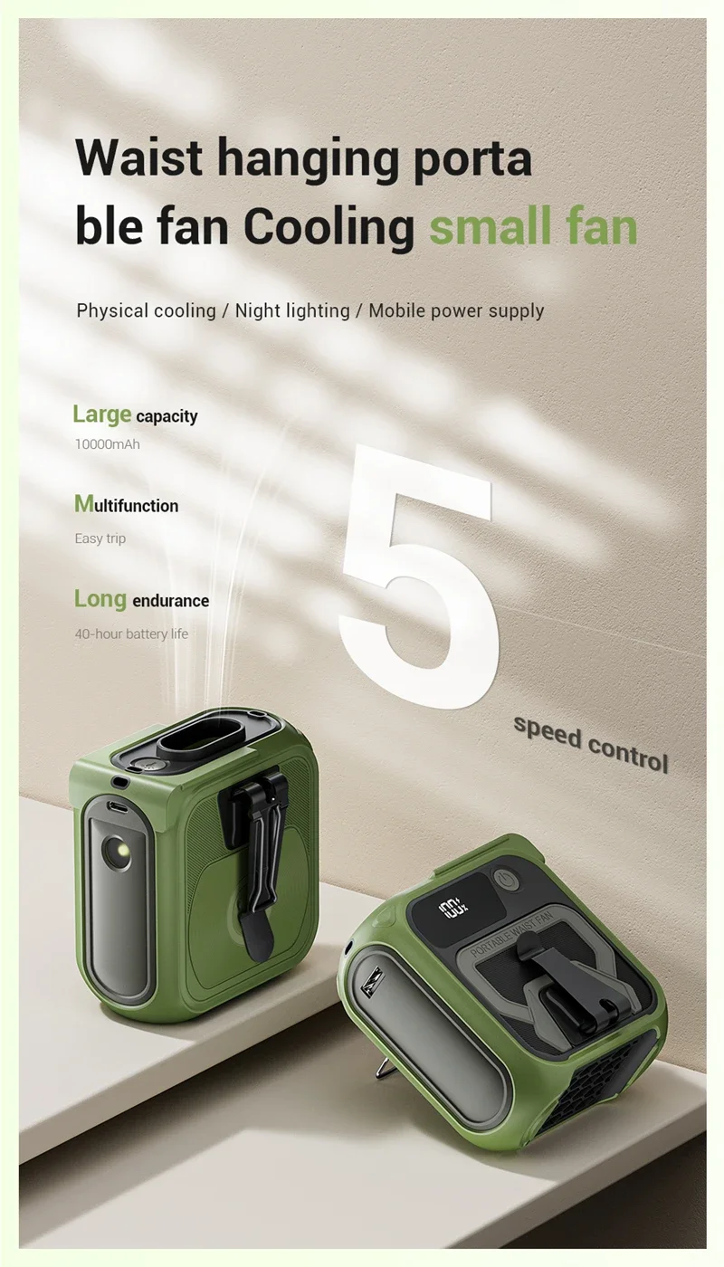 Xiaomi Portable Waist Fan Rechargeable Hands Free Wearable Clip Fan with LED Light for Outdoor Camping Hiking Indoor Strong Wind