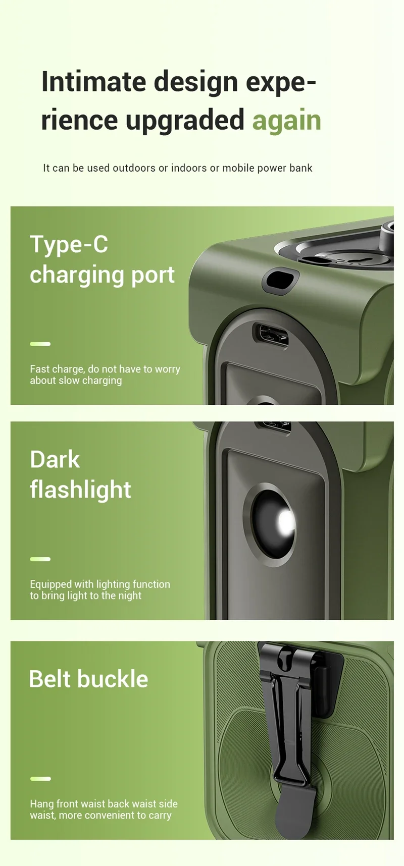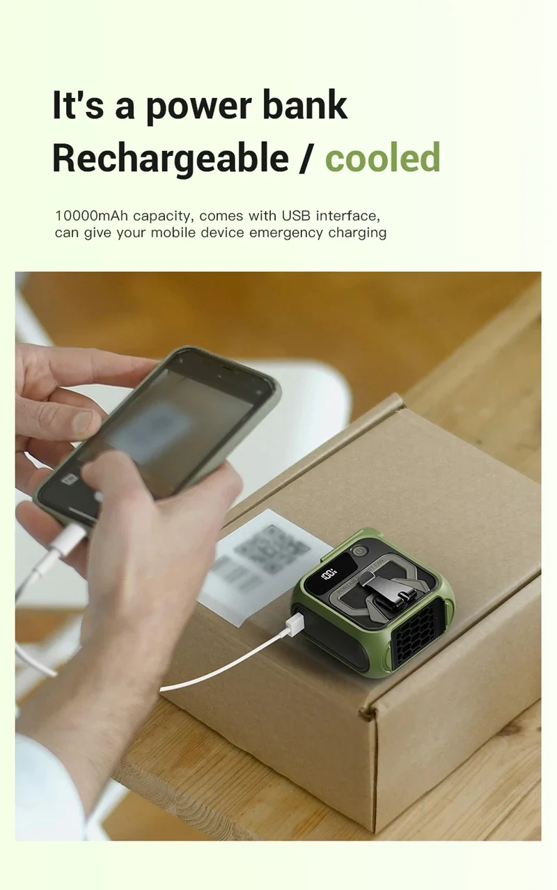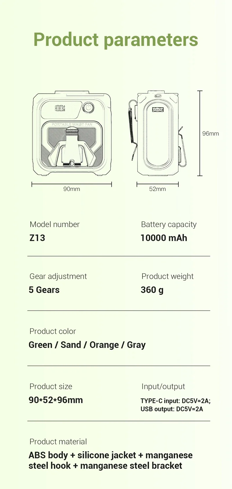 Xiaomi Portable Waist Fan Rechargeable Hands Free Wearable Clip Fan with LED Light for Outdoor Camping Hiking Indoor Strong Wind