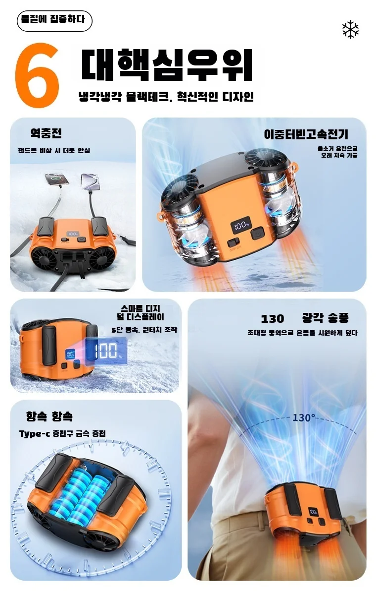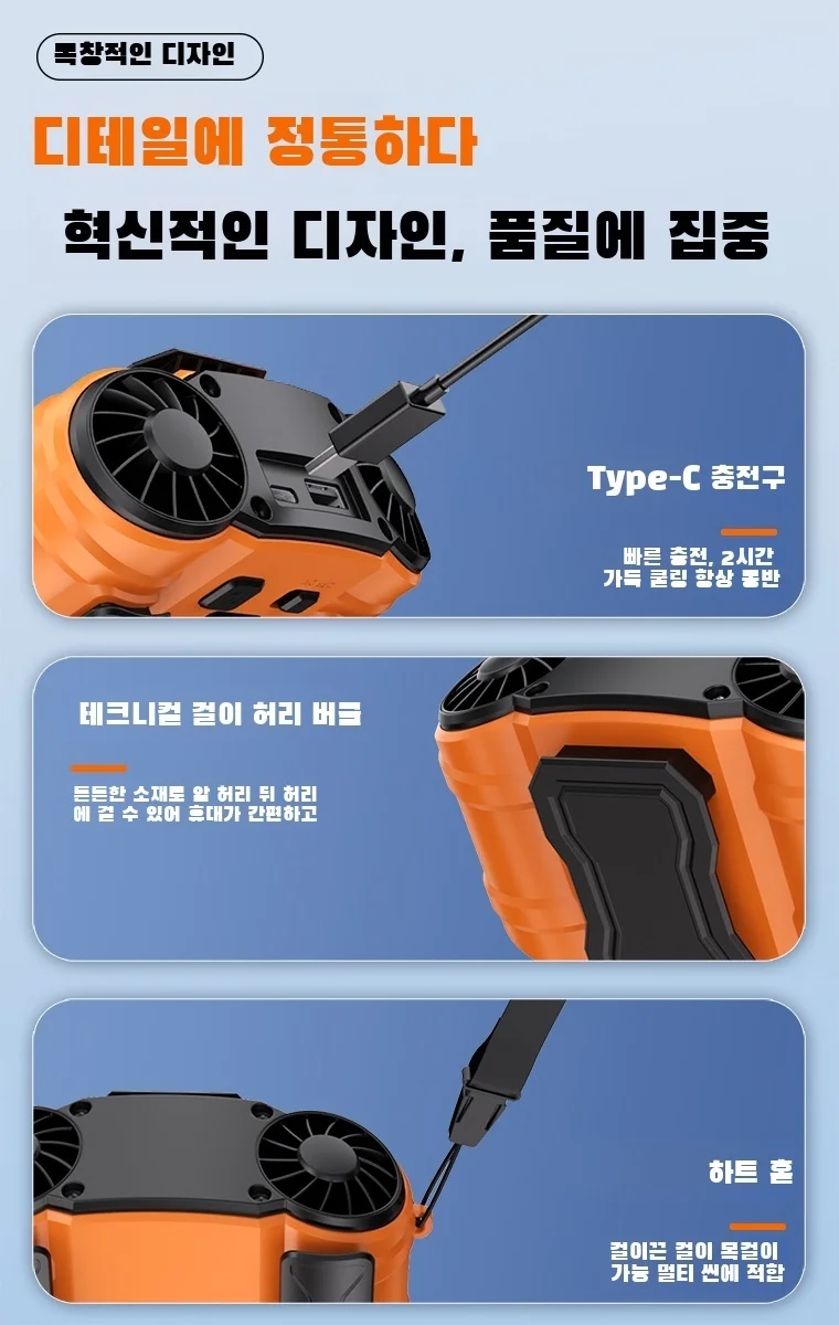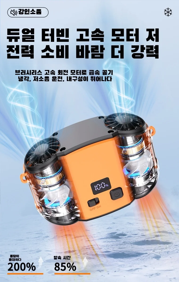 Outdoor Double Air Outlet Fan Portable Waist Hanging Neck Strong Dual