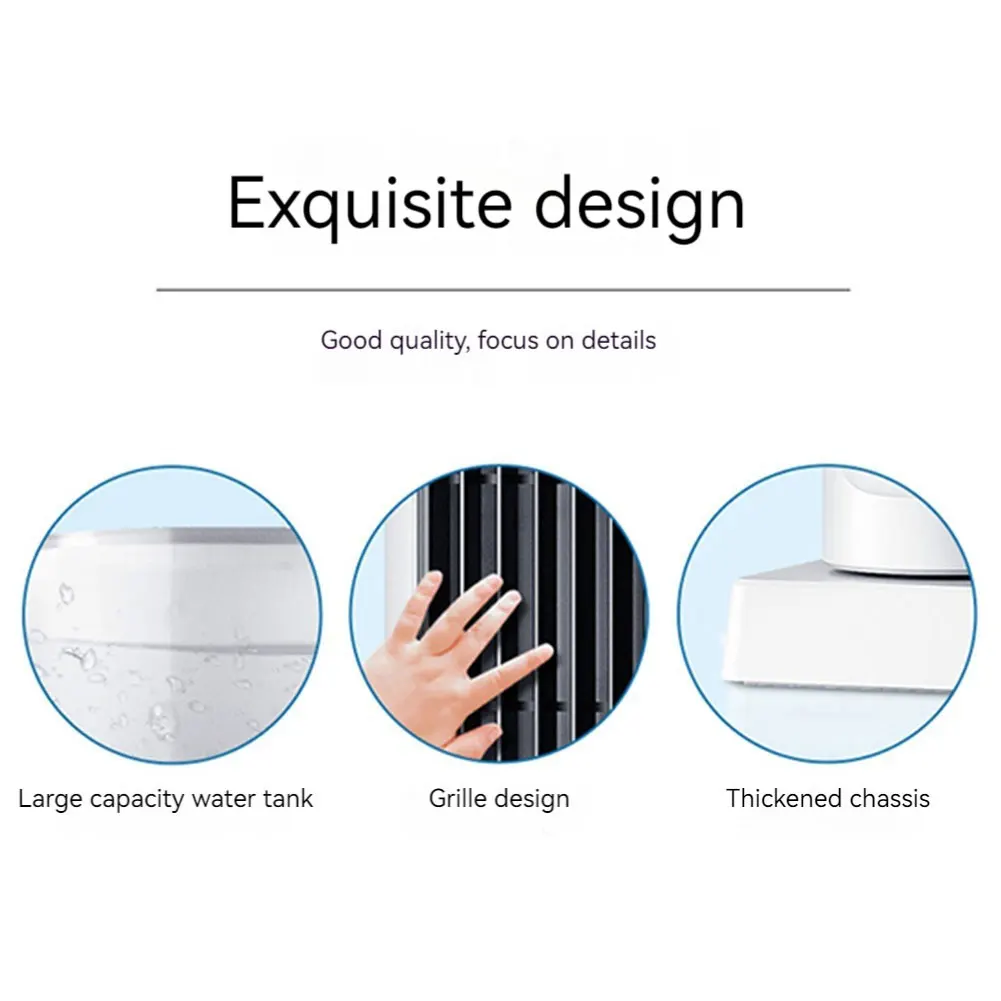 2.Built-in Air Purifier: This multifunctional fan includes a humidifier to release purified, moisture-rich air, improving indoor air quality and reducing dryness. It's perfect for maintaining skin hydration and overall health.