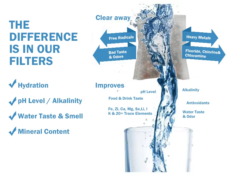 ENHANCES TASTE & ODOUR - Our specialized alkaline water filter pouch is designed to increase pH levels and filter water for a smooth, clean, and refreshing taste. Plus, they last up to 29gal/108L each, making it an economical alkaline water filter pouch.