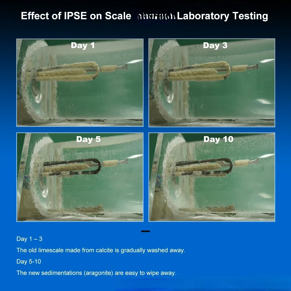 The IPSE system changes the structure of ions in the water passing through the equipment, so that Ca+ (calcium ions),Mg+ (magnesium ions) in the water cannot crystallize and are stored in the water as monomeric components, thereby preventing the formation of scale.