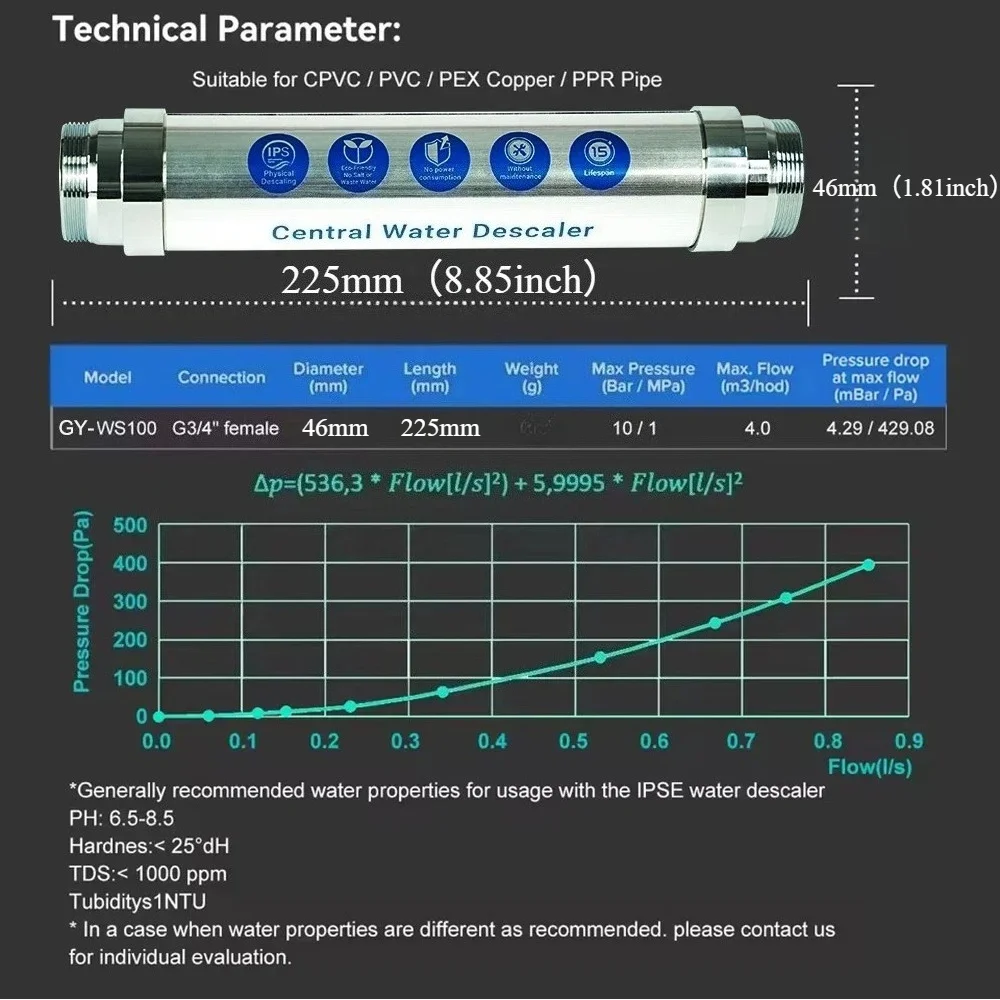 ●Suitable for Whole house scale inhibition&descaler, Reduces 86% creation of Limescale on water supply elements.Extends life and efficiency ( water heater,shower heads, Boiler, kettle of home appliances, pipework, valves, taps, mixers)