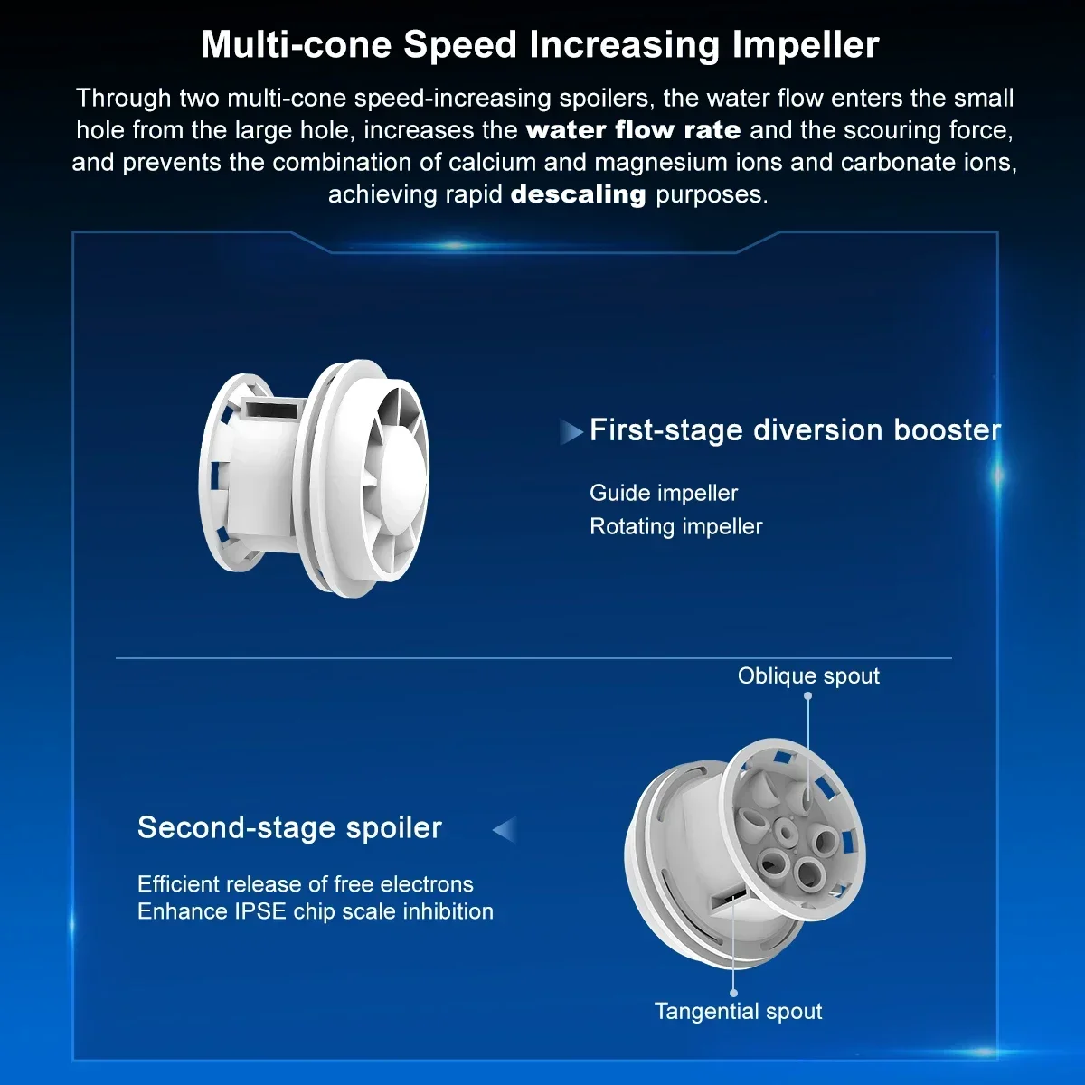●Note: Does not lower TDS(ppm):(Prevent calcium and magnesium ions from scaling and form compounds, but will not remove calcium and magnesium ions, unlike traditional water softeners.)