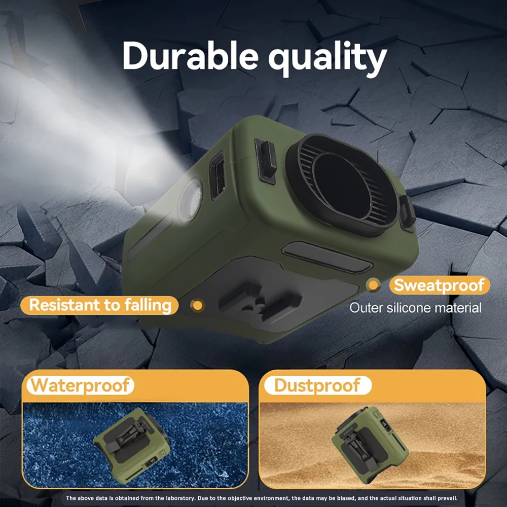 Portable Waist Fan 10000mAh USB Rechargeable Fan Outdoor Waist Clip Camping Fan Mini Hang Neck Fan with LED Light and Power BanK