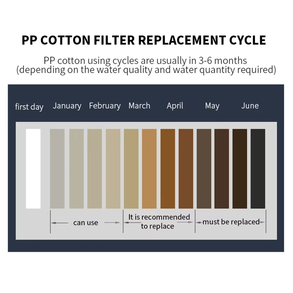 [FILTER LIFETIME] Replace filters as needed every 6 - 12 months (depending on water quality). To ensure you are continuously receiving sediment free water, make sure you change your filters regularly.
