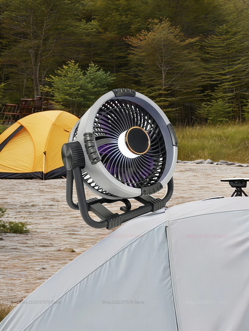 Upgrade your outdoor experience with this versatile, rechargeable outdoor camping fan—designed for long-lasting performance, bright illumination, remote operation, and reliable power backup. Whether for outdoor adventures, emergency preparedness, or indoor cooling, this multi-use fan caters to all your needs.