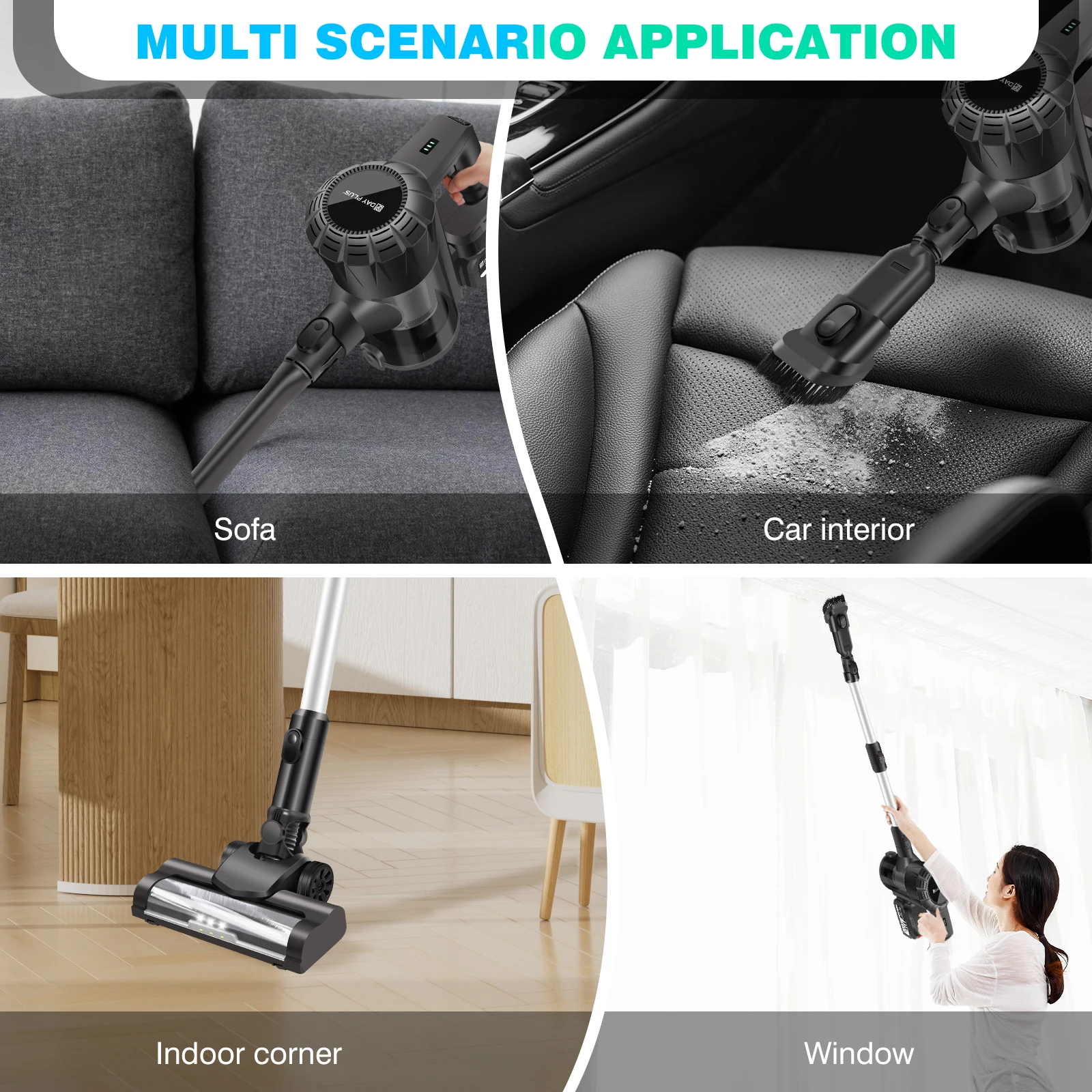 6-in-1 Cordless Vacuum Cleaner - 550W 45KPA Strong Suction with 2 Batteries