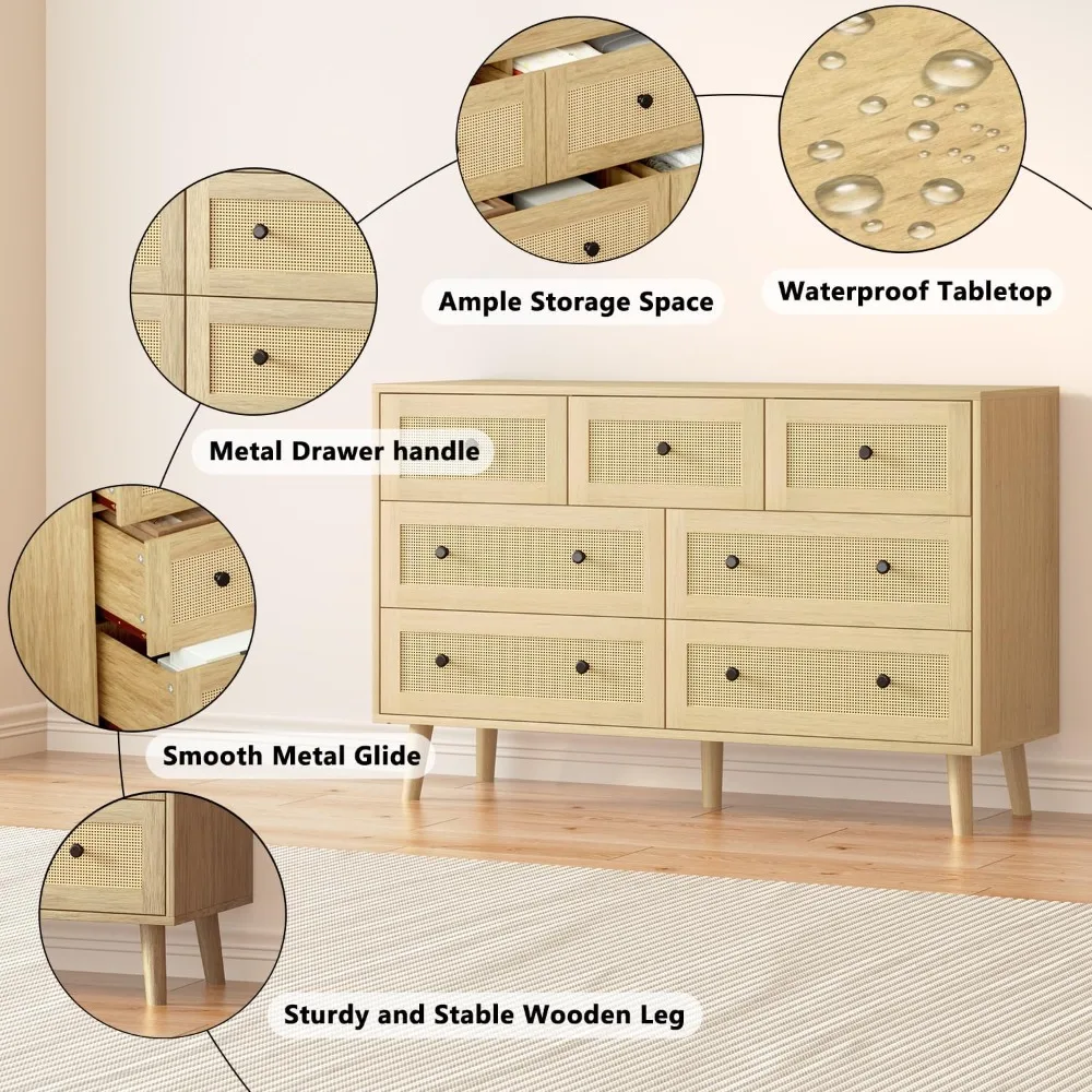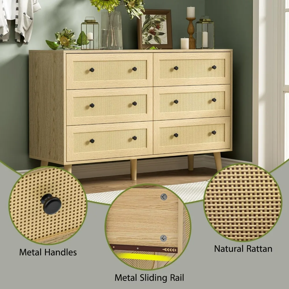 Home Style: Elevate your living space with the charm of mid-century design. This drawer dresser, adorned with woven rattan, angled legs, and golden handles, is a stylish addition to your home. Whether used individually or paired with other rattan pieces from, it brings a touch of elegance.