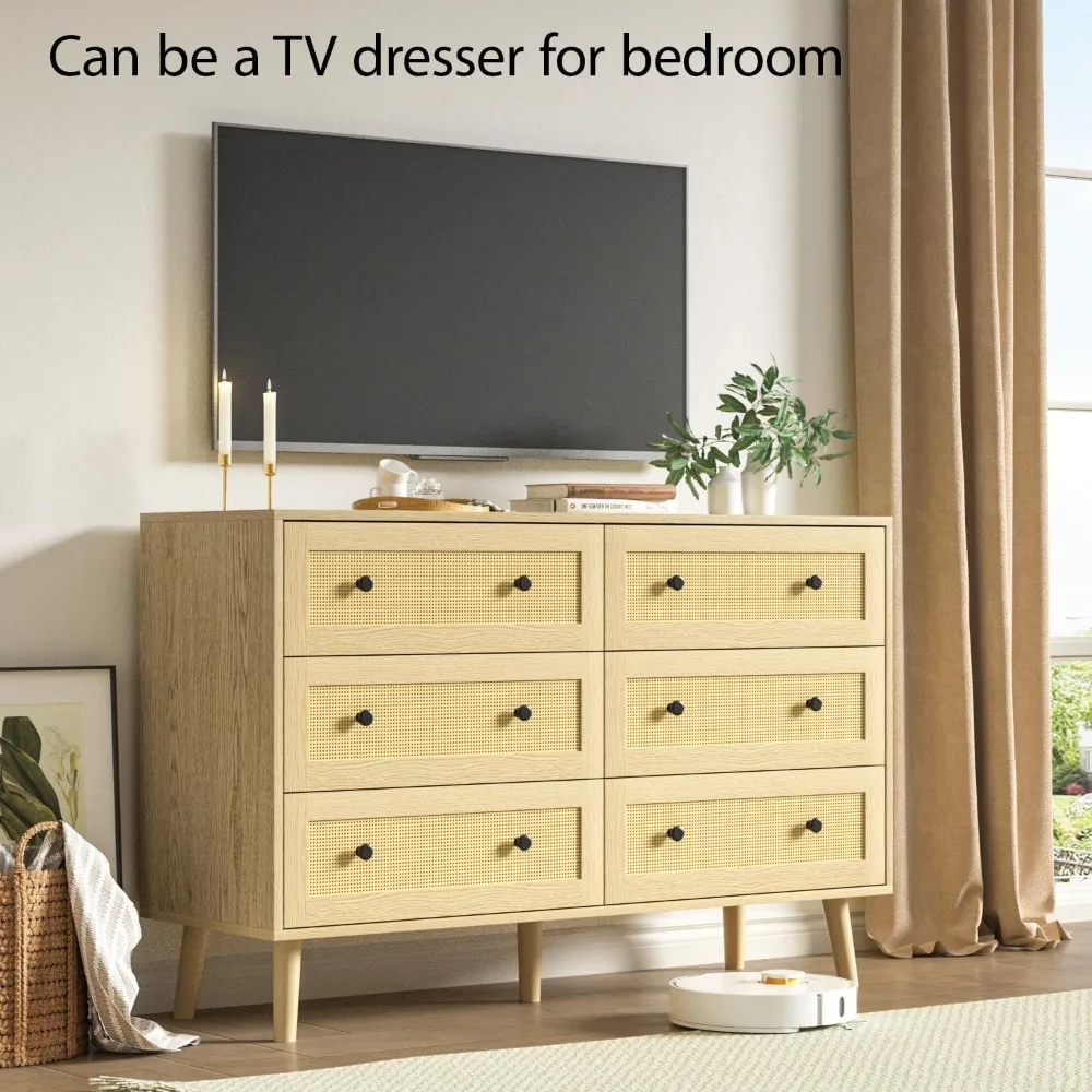 Spacious Storage: With dimensions of 47.2"L x 15.7"W x 30.7"H, this dresser offers ample storage. The broad wooden top accommodates lamps, photos, and flowers, while the 6 large drawers provide space for clothes, books, and bedtime essentials. Keep your room organized and tidy effortlessly.