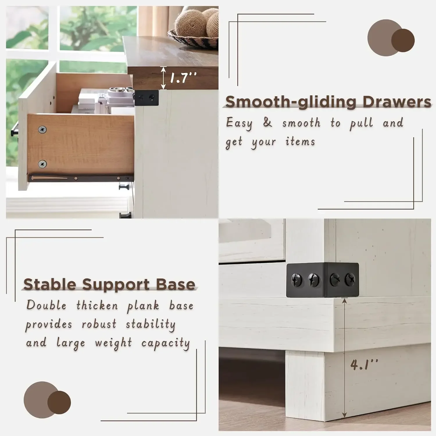 Farmhouse Dresser, Wood Tall Chest of Drawers with Thick Plank Styling, Rustic Closet Dresser for Bedroom, Living,Antique White