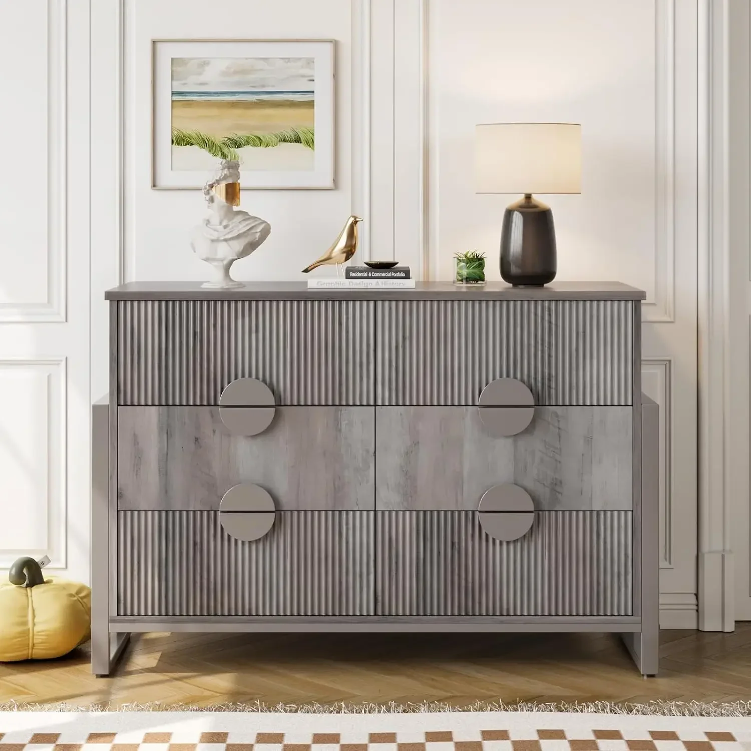 6 Deep Drawer Dresser, Dressers for Bedroom, Chest of Drawers Closet Organizers and Storage Clothes - Easy Pulls Handle, Textured Wood Sticks Border for Bedroom,Livingroom, Hallway, Gray Wash