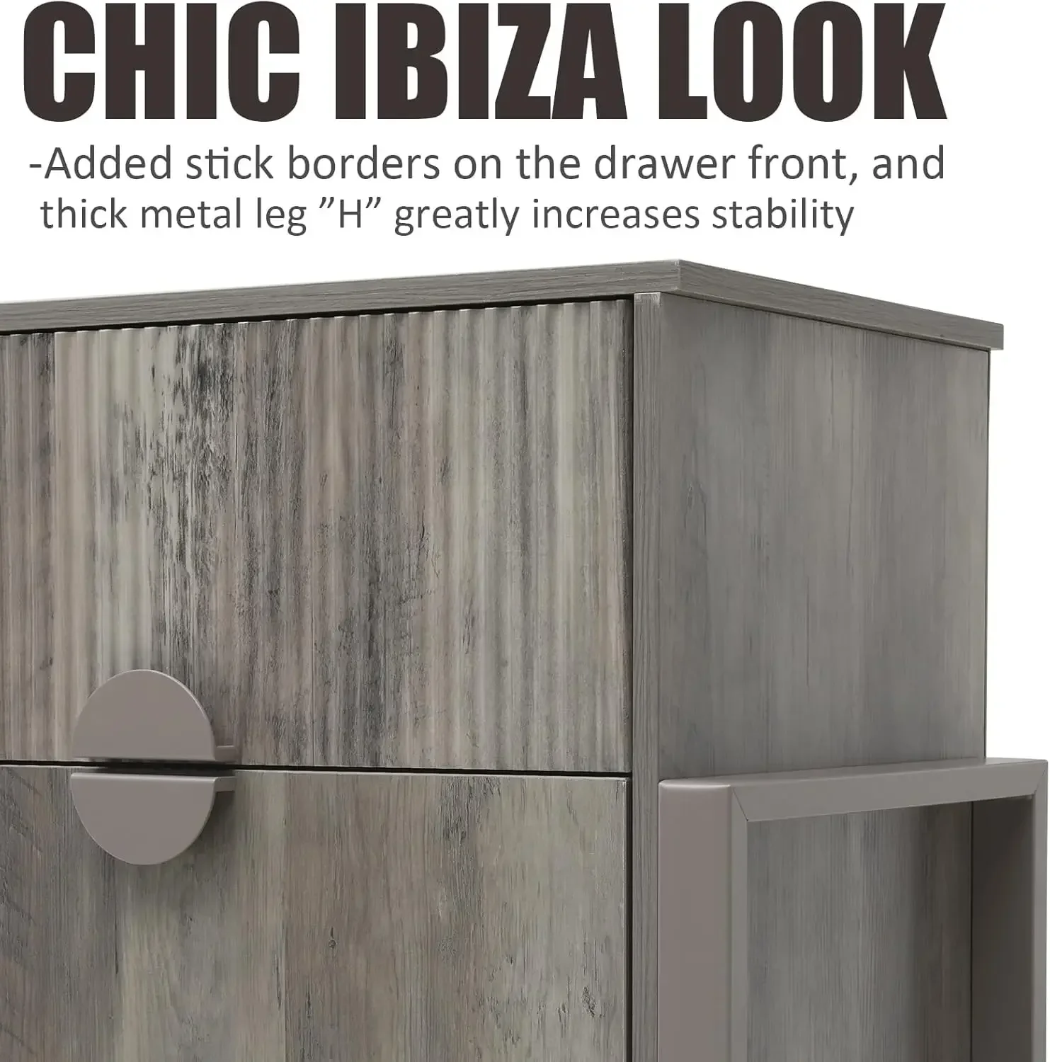 • 【Chic lbiza style】This chest cabinet is elegant in workmanship, added sticks borders on the drawer front, combined with symmetrical metal handles, adds a modern feel with a suitably vintage flavor.