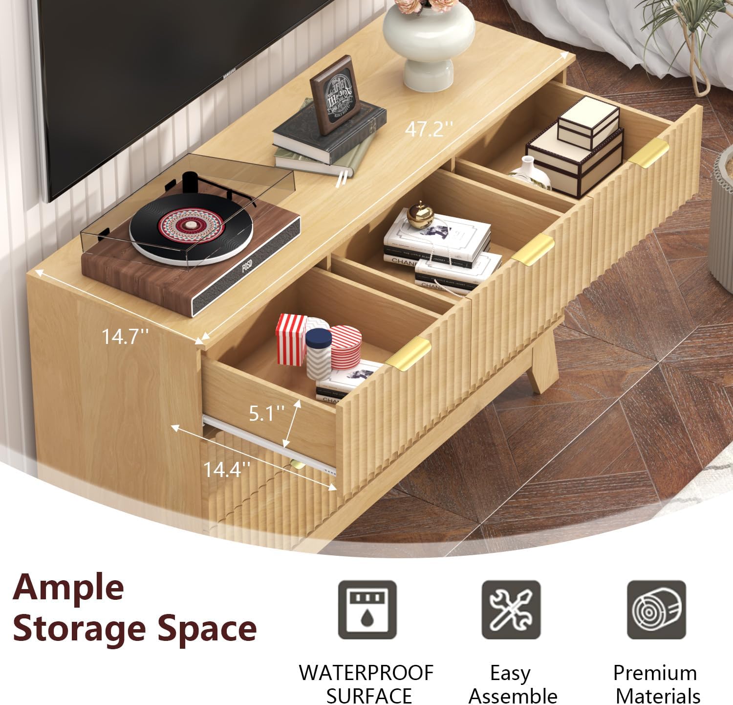 Fluted Dresser For Bedroom,7 Drawer Dresser For Closet,Storage Cabinet And Chest Of Drawers With Gold Handle,Tv Stand,Storage Organizer For Living Room,Hallway,Entryway,Nature Oak