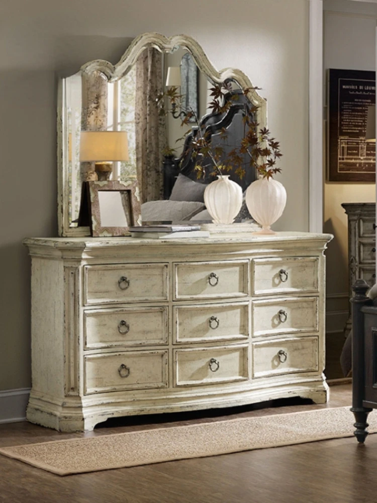 American Country Solid Wood Dresser Bedroom Chest of Drawers TV Cabinet Multi-Drawer Locker White as Old Vintage Furniture