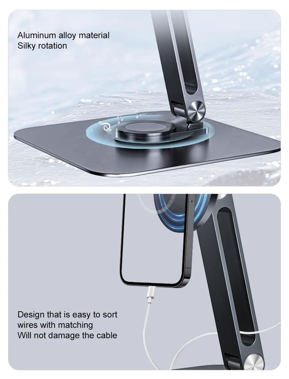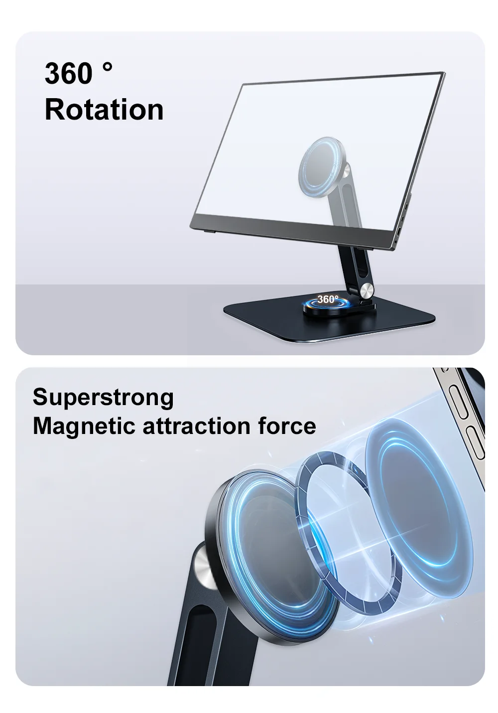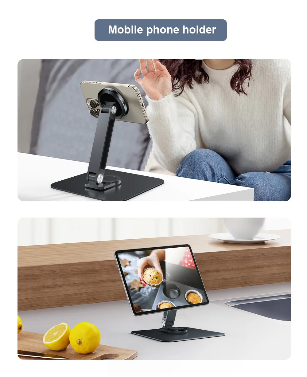 The bracket supports 360° rotation, allowing users to freely adjust the angle of their devices as needed, whether in landscape or portrait mode, for the best viewing experience.