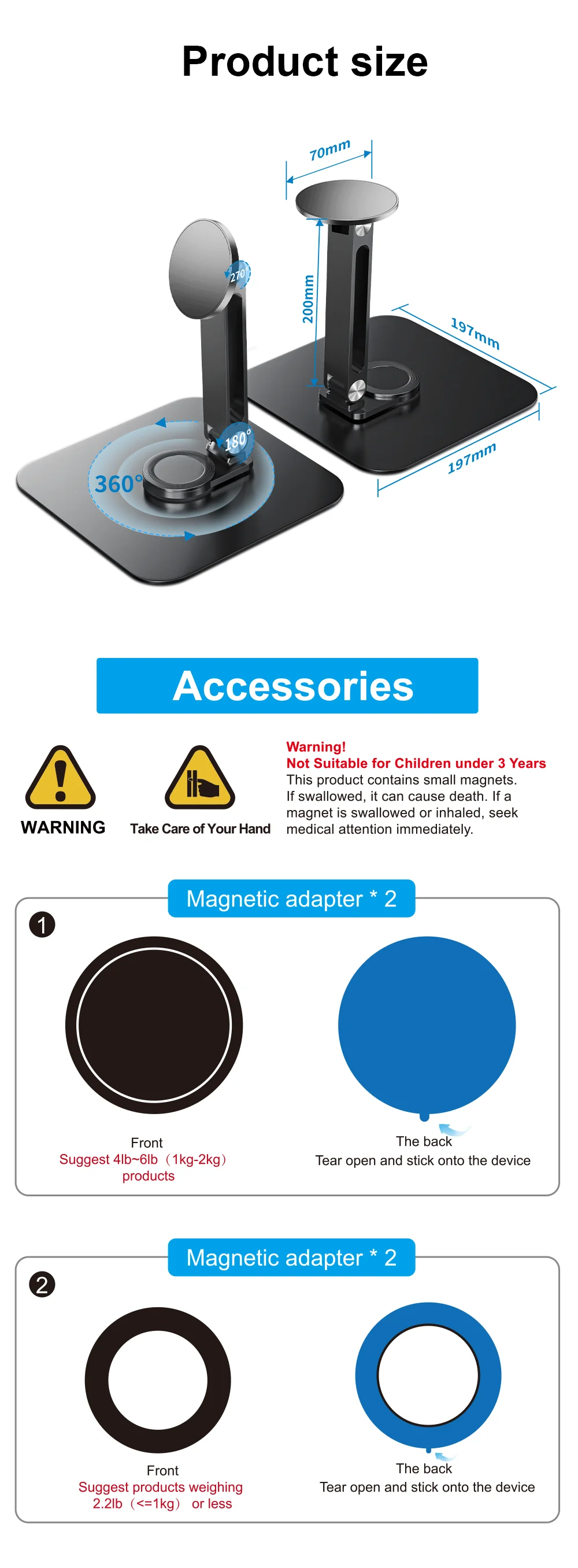 Designed with super strong magnetic force to ensure devices are securely attached, and they won't easily fall off even when shaken, providing a safe and reliable user experience.