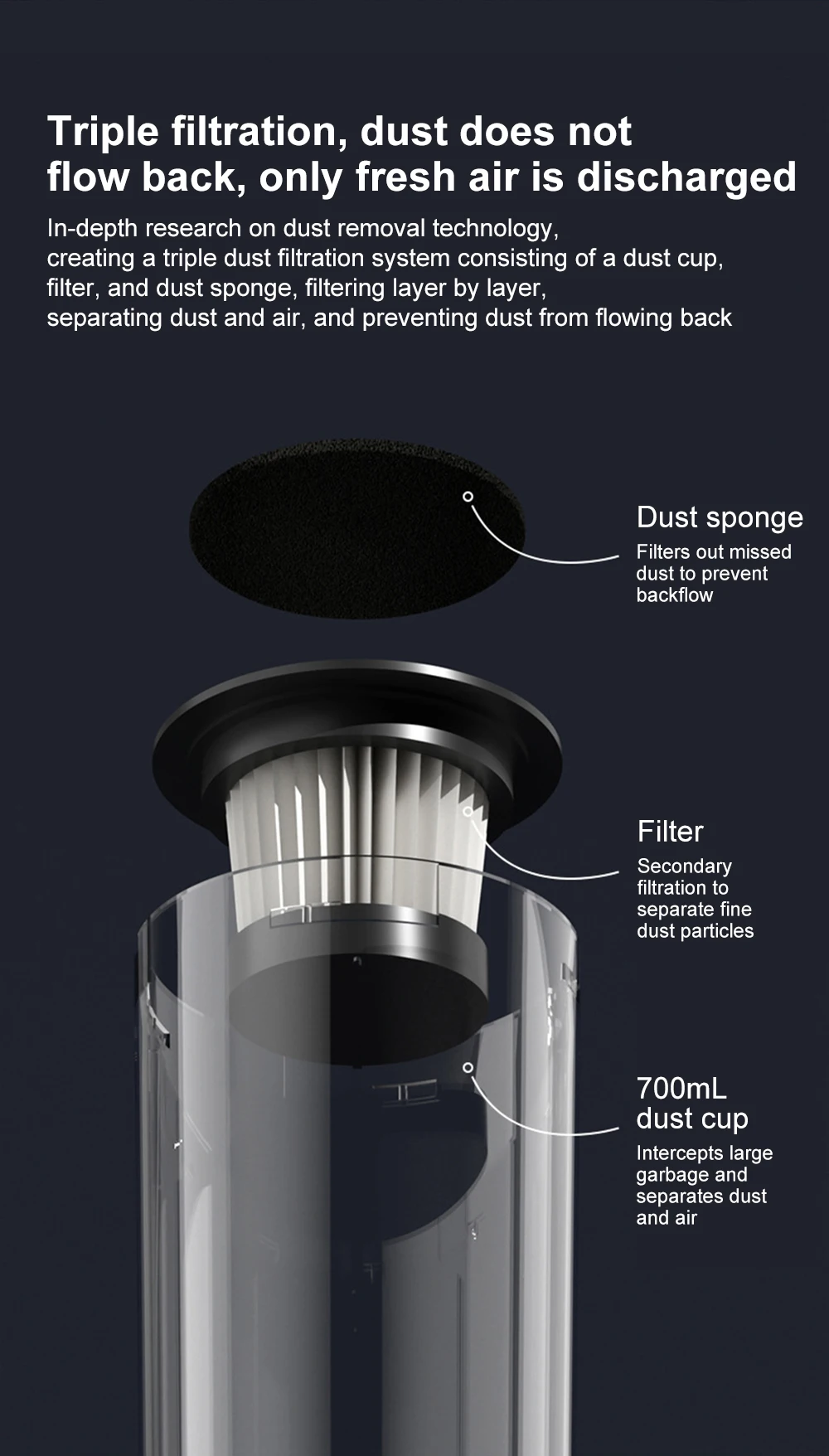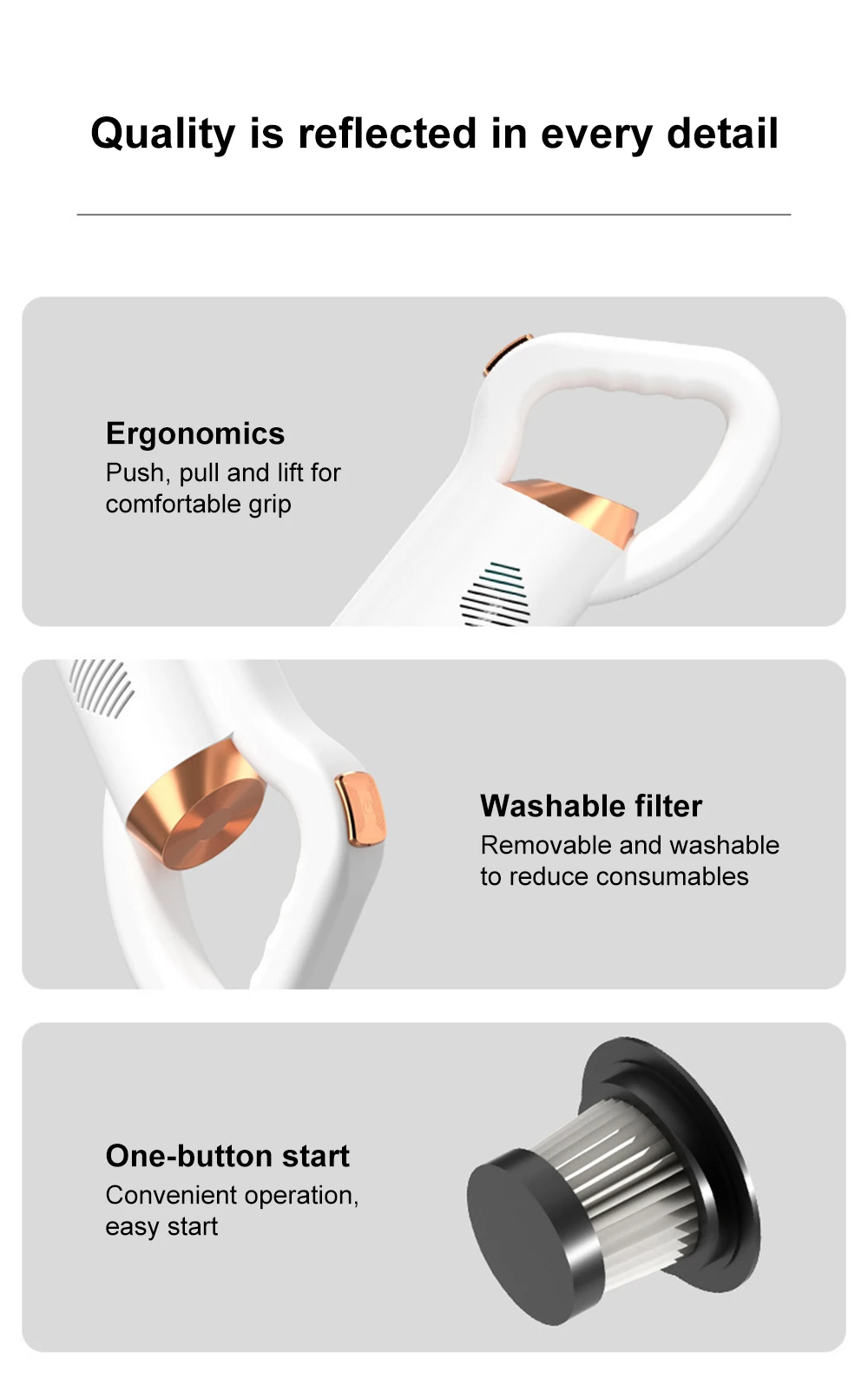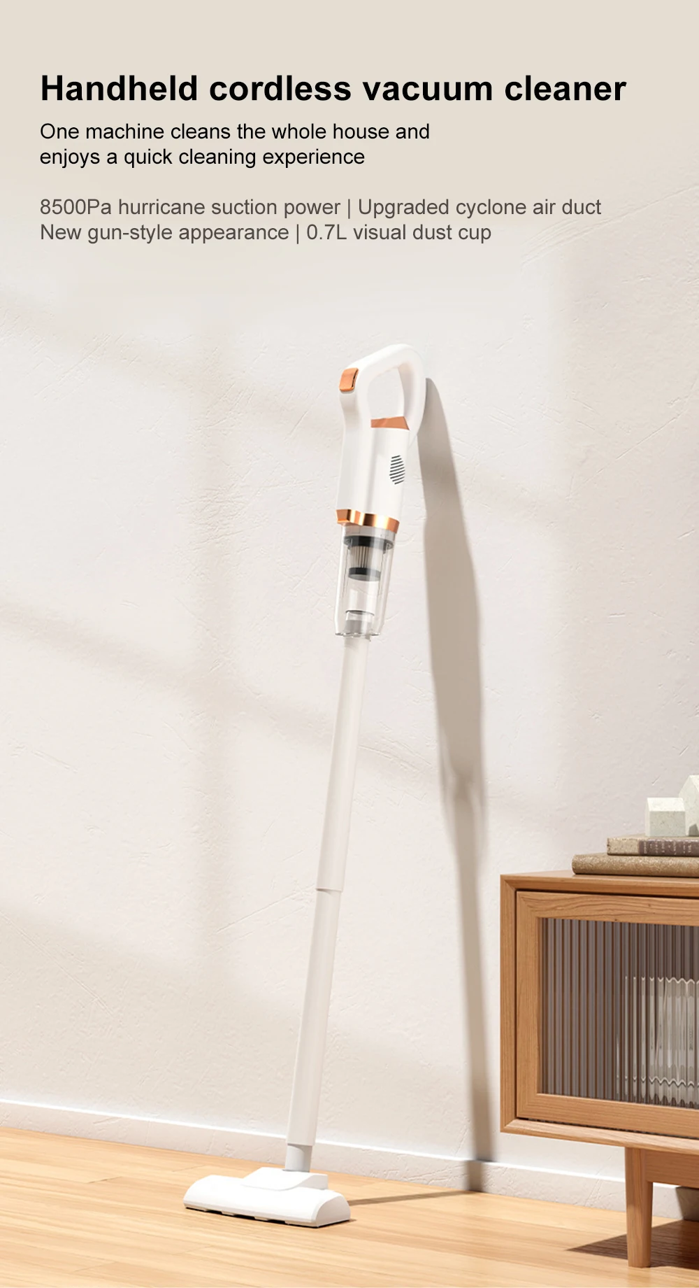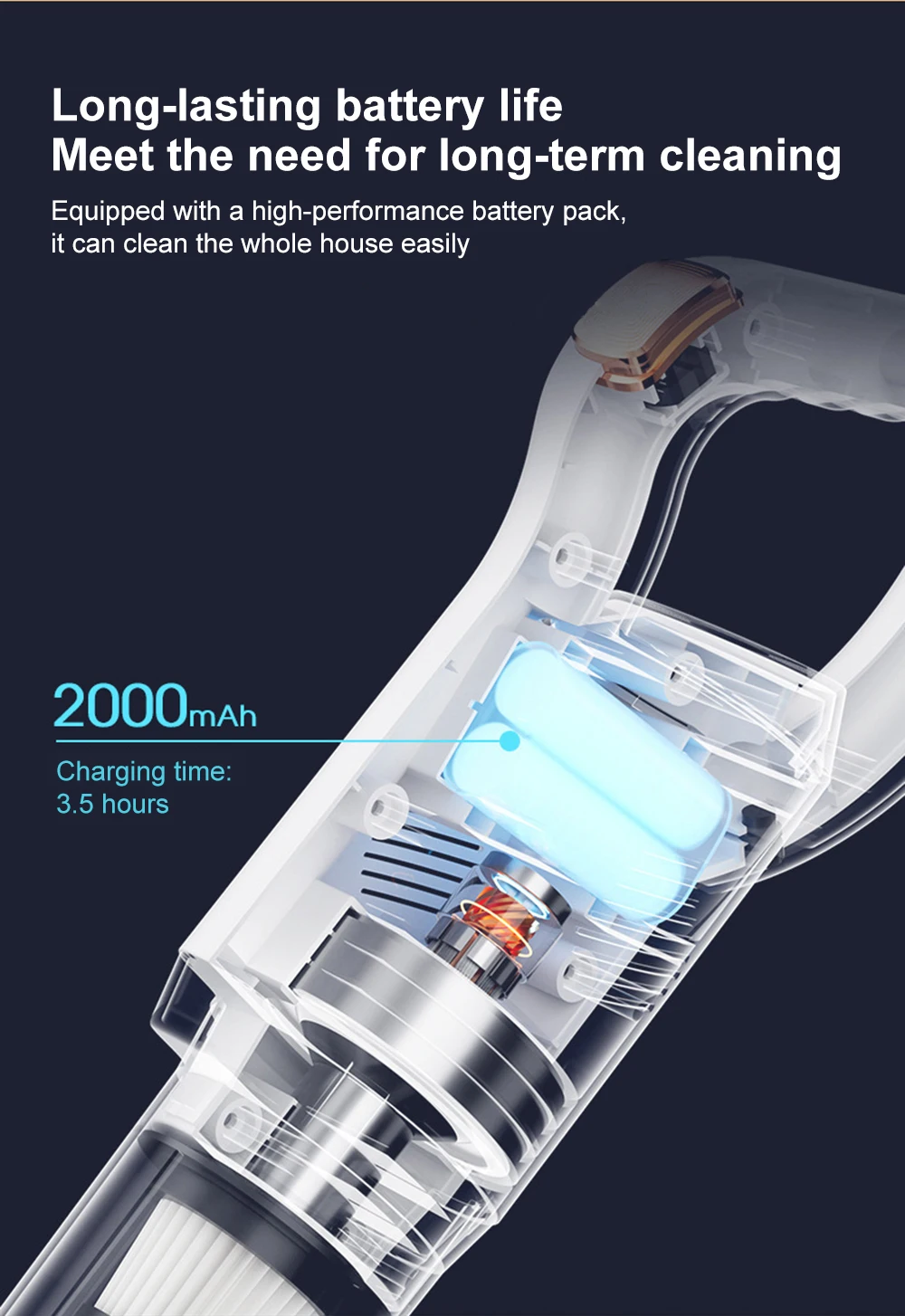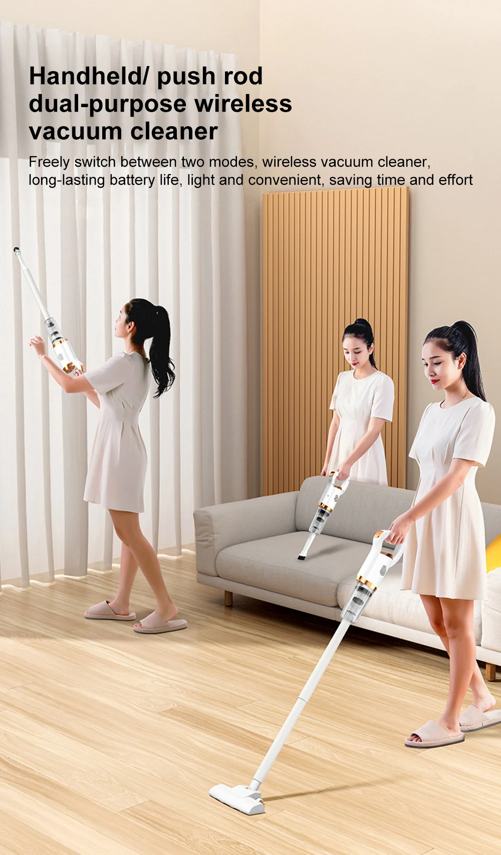 Handheld Water Sweeper USB Rechargeable Strong Suction Cordless Portable Cleaning Robot 2 in 1 Large Suction Vacuum Cleaner 120WFeature: 1. Powerful Suction: Our handheld wireless vacuum cleaner boasts a 8500pa suction power, capable of picking up the tiniest dust and dirt particles, ensuring a thorough clean on both carpets and hard floors quickly and efficiently. 2. Large Dust Cup Capacity: Equipped with a 500ml dust cup, the vacuum electric sweeper allows for extended cleaning sessions without the need for frequent emptying, making your cleaning process faster and more efficient. 3. Long Battery Life: The cordless portable cleaning robot is powered by a 2000mAh lithium battery, offering up to 15 minutes of use after a 3-hour charge, with the convenience of quick recharging via the included USB cable. 4. Versatile Cleaning Tools: To facilitate easier cleaning, our large suction vacuum cleaner comes with a floor brush and two extension tubes. The floor brush is ideal for hard floors, while the extension tubes allow access to tight spaces and corners. 5. Compact and Portable: Designed to be compact and lightweight, the vertical clean electric vacuum cleaner is easy to carry and use anywhere you need, making it the perfect cleaning tool for homes, cars, or offices.