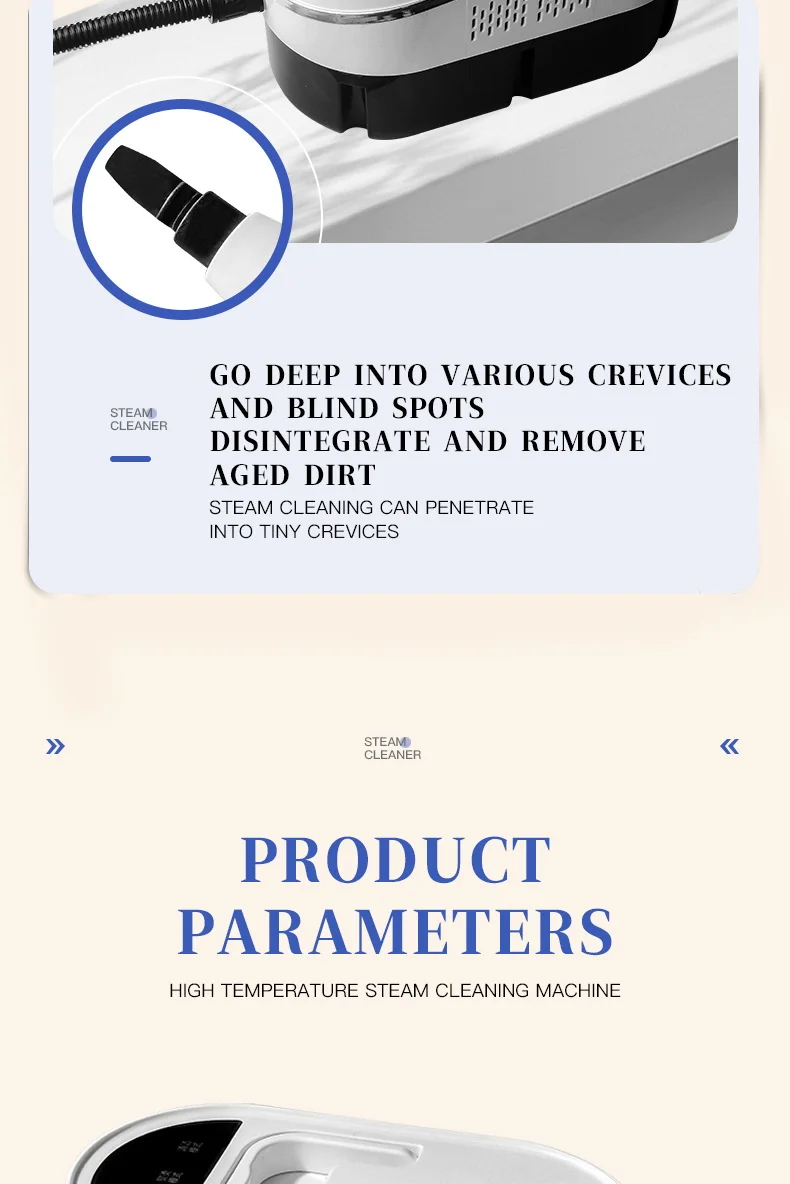 3.Lengthen the power cord and steam hose, single person operation is not laborious, can meet the cleaning needs.