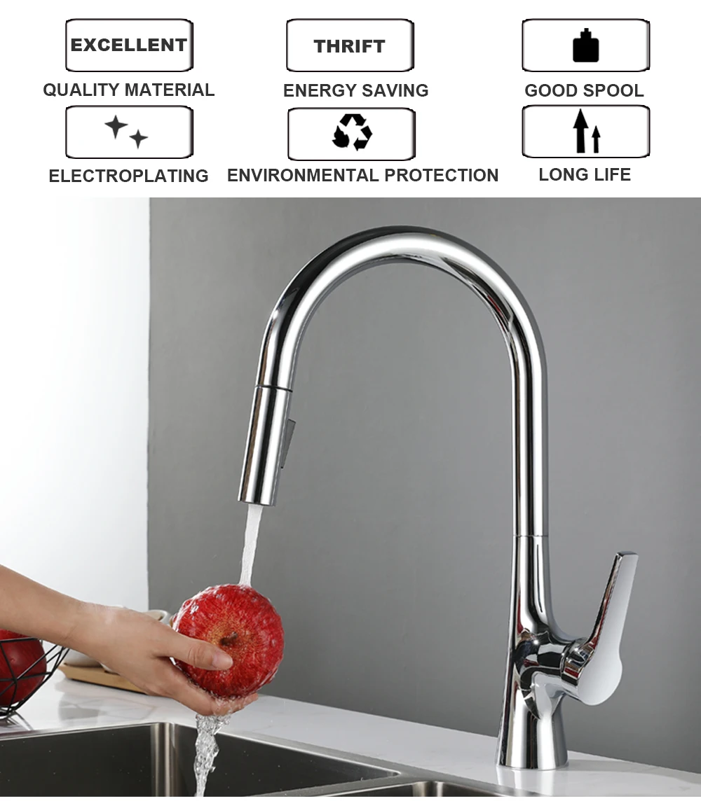 Bagnolux Brass Chrome Black Brushed Gold Spray Rotation Deck Mounted Hot And Cold Water Sink Taps Pull Out Spout Kitchen Faucet
