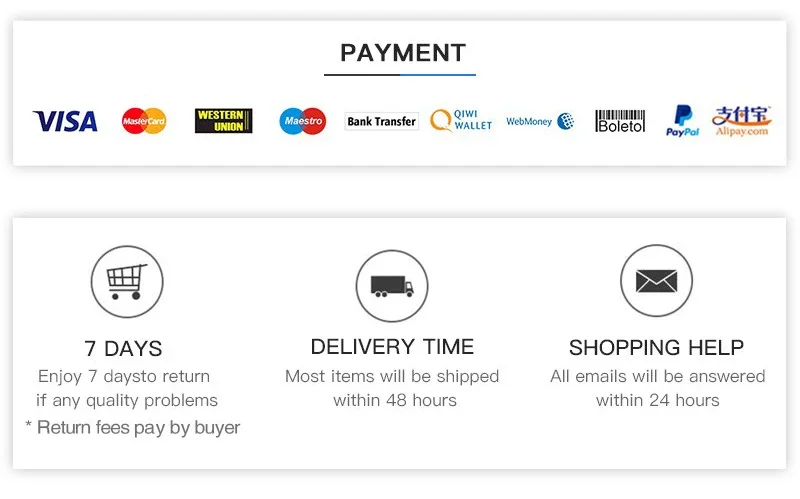 - Please feel free to email us or contact by aliexpress if you have any questions on payment