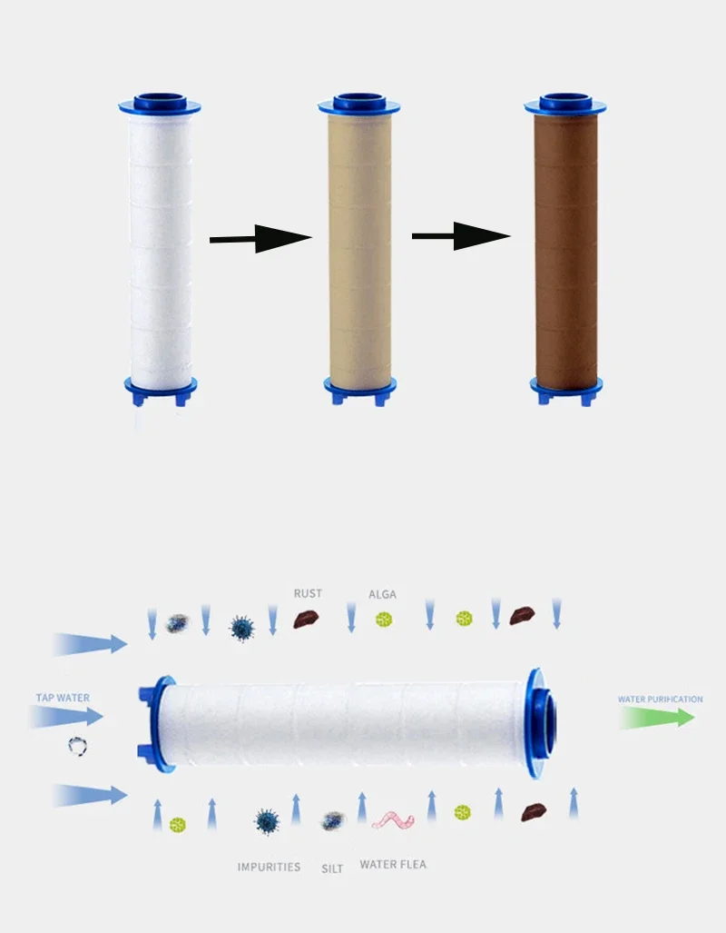 Water purifier: Reduce the chance of clogged shower head. We suggest you change the filter every 3 moths (~ 8000 gallons), epending on water quality and frequency of use.