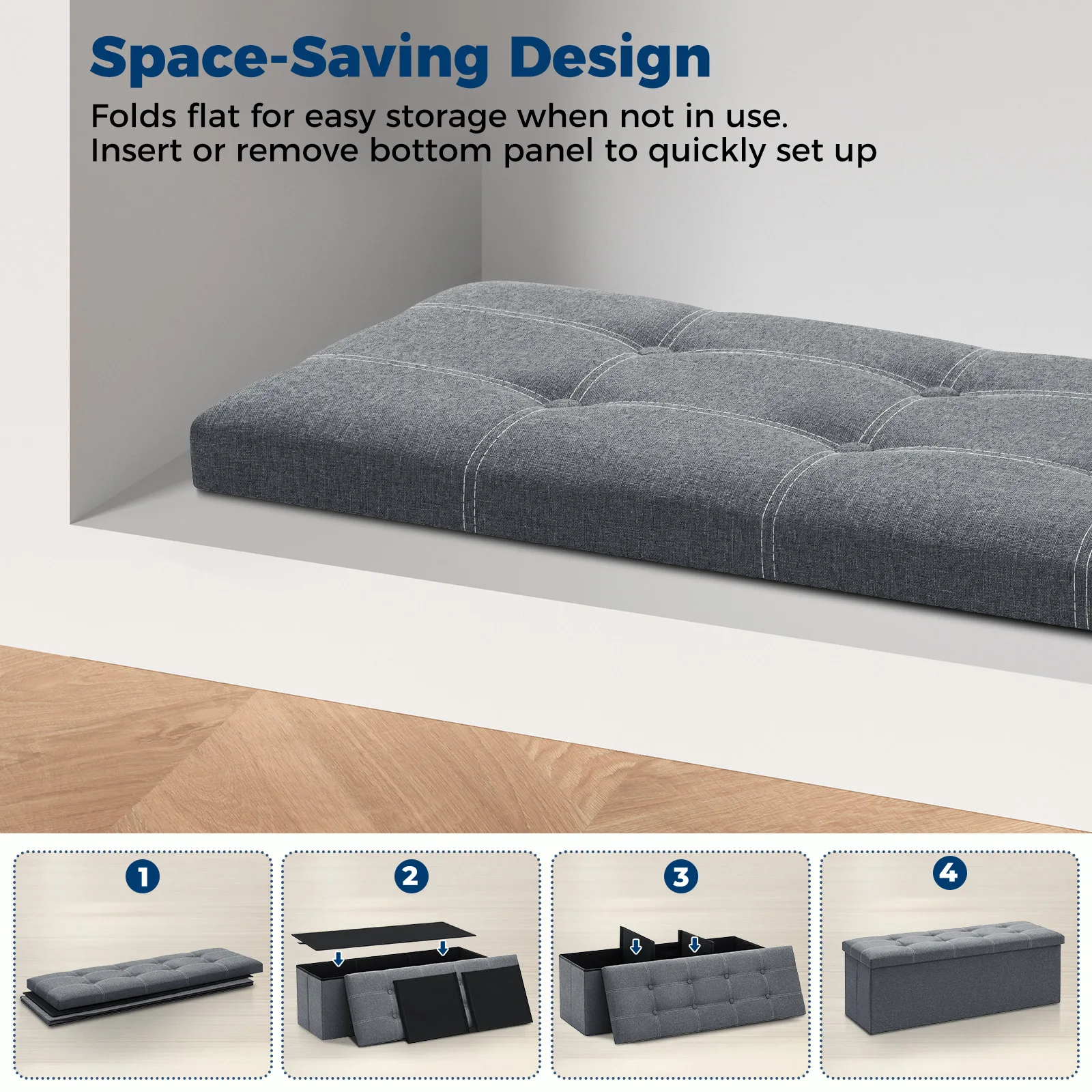 3. Comfortable seating: The padded cushion offers a comfortable seating experience, allowing you to relax while putting on your shoes or enjoying a book.