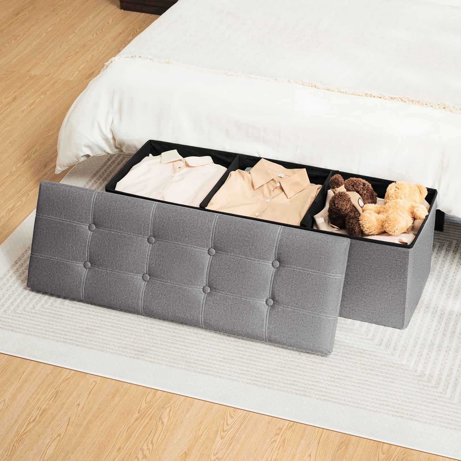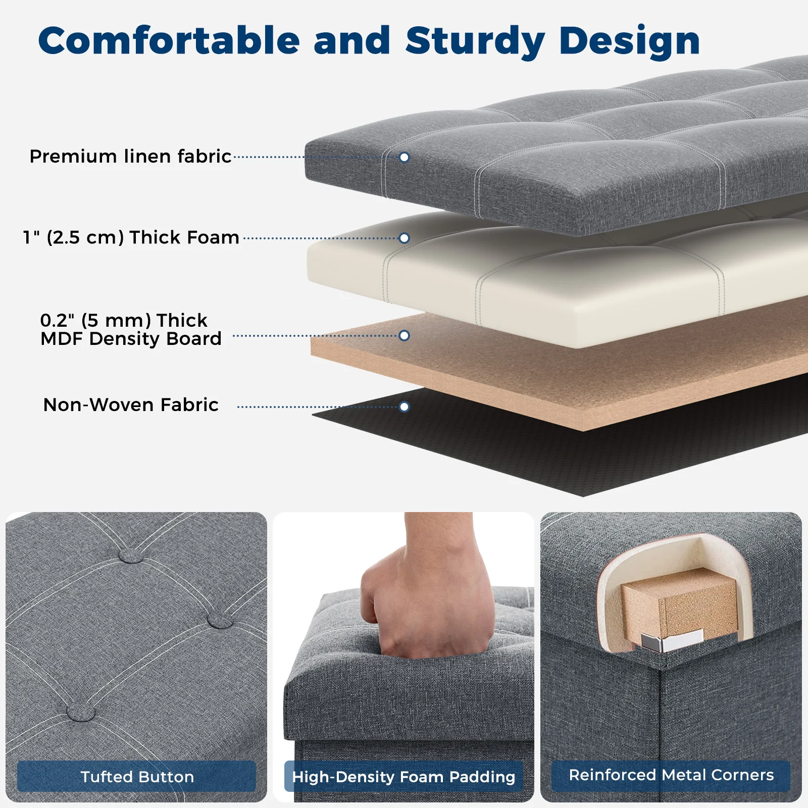 4. Sturdy construction: Made of high-quality linen fabric and solid wood, this bed end stool is built to last and can support a weight of up to 330lbs.