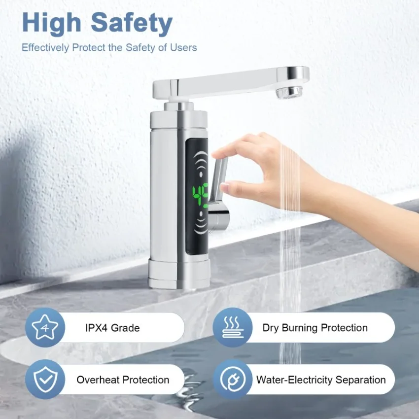 This electric faucet is suitable for bathrooms, toilets, kitchens, etc. It can be used in daily washing, such as washing vegetables, fruits, dishes, face, hair, clothes, and so on.